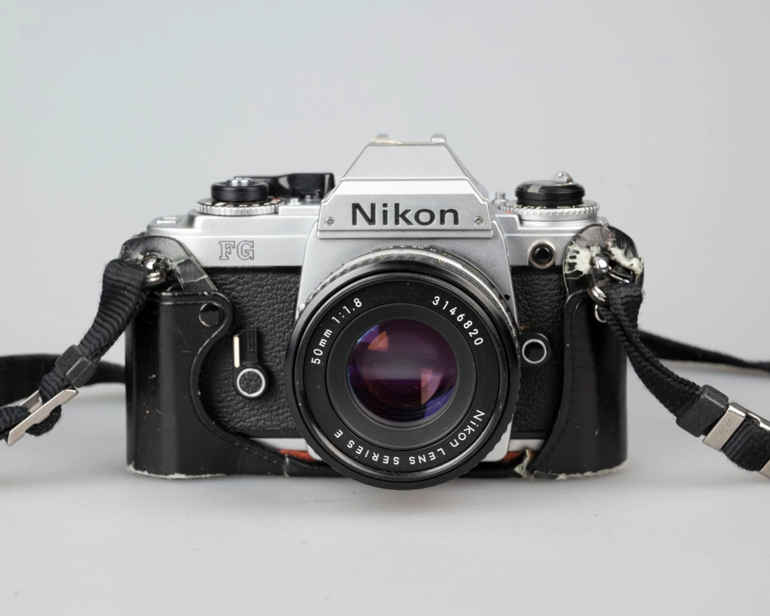 The FG is Nikon’s smallest and lightest full-featured 35mm SLR camera: the body weighs only 490 grams and the whole body, 50mm lens, case and strap outfit only add up to 782g.