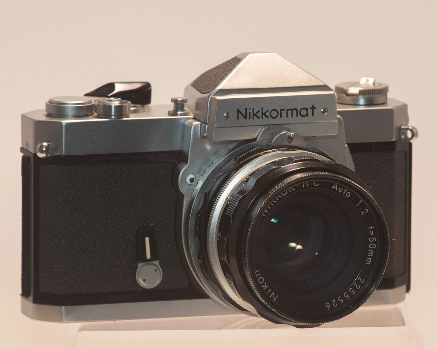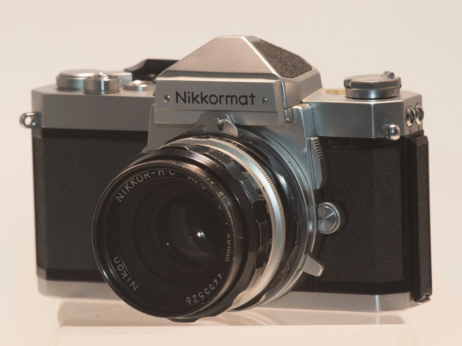 The Nikkormat FTn is a classic manual focus, mechanical 35mm film SLR from the 1970s and the included lens is a very sharp multi-coated HC Nikkor 50mm f2.