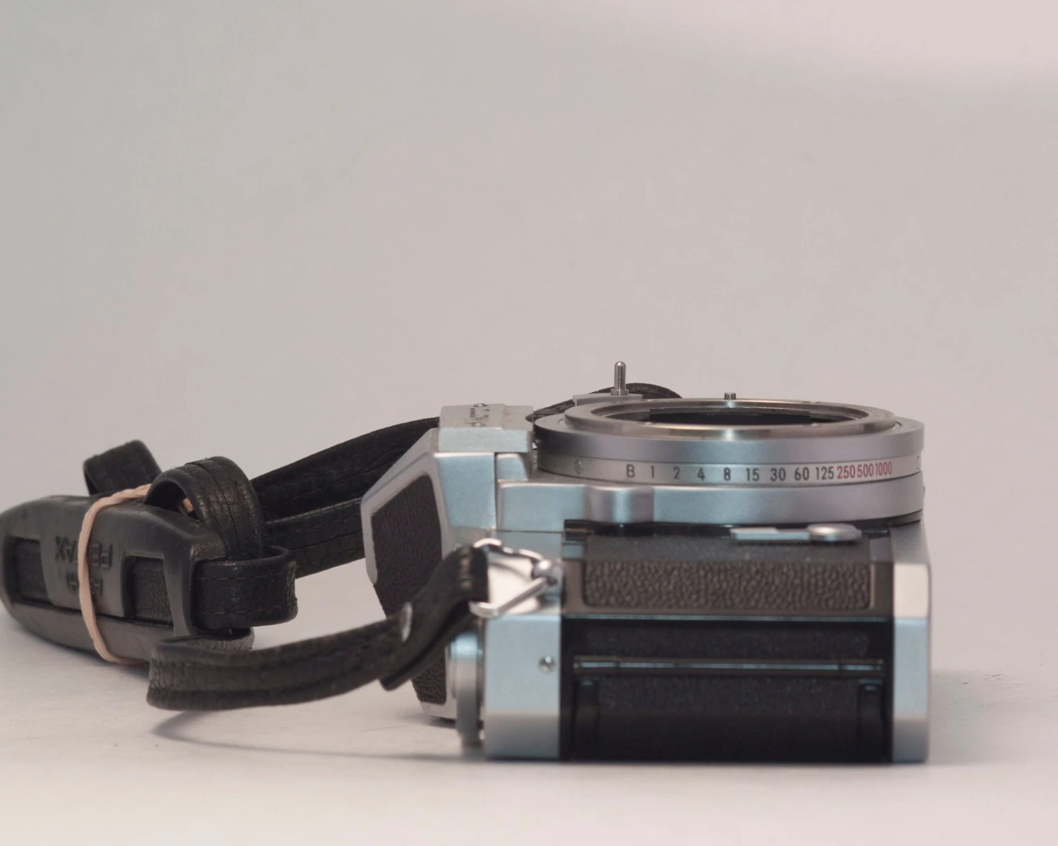 - Shutter: Vertical travel, metal focal plane shutter with speeds from 1 sec to 1/1000th sec + B. 8 second self-timer.