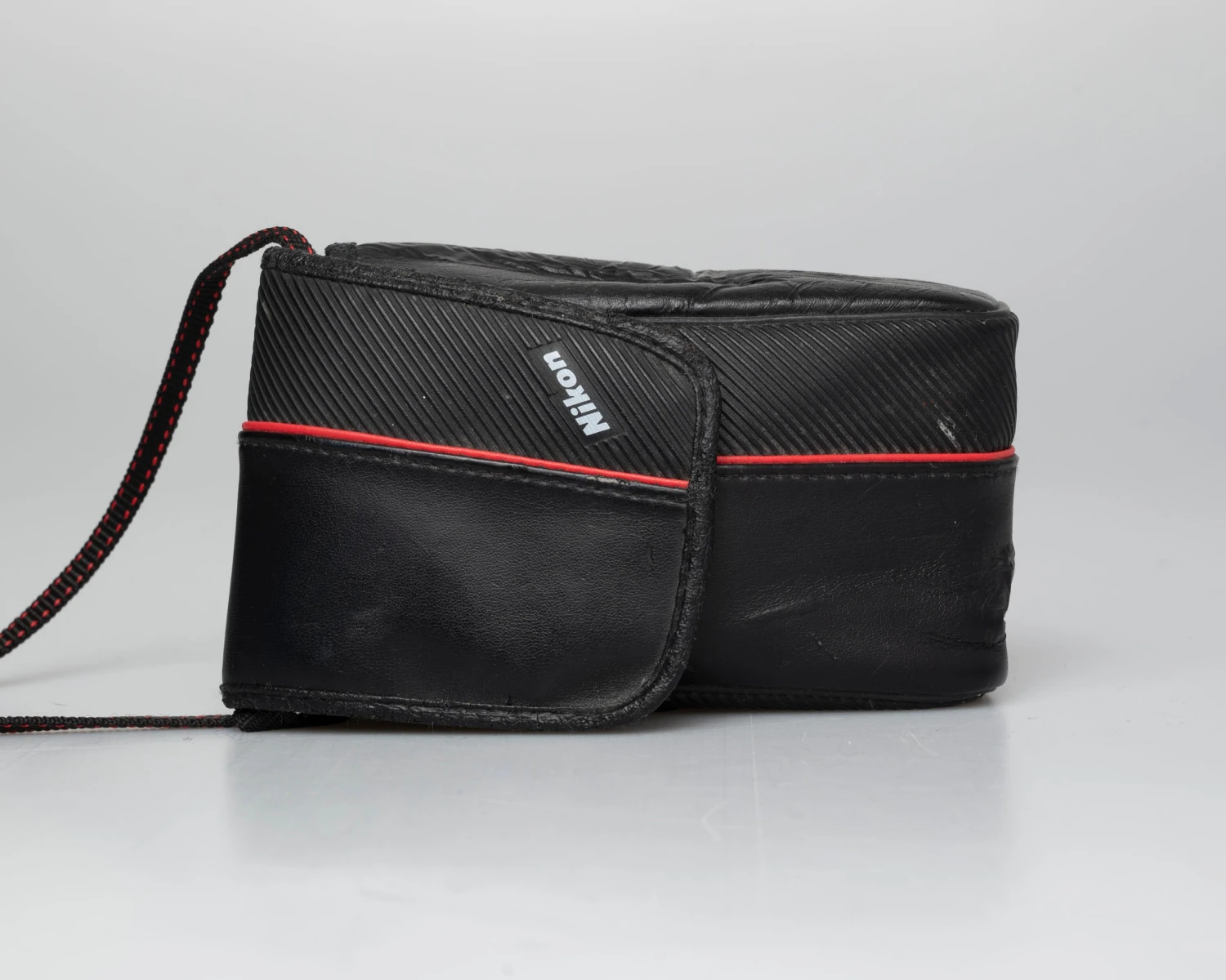 The camera and lens are in excellent functional condition and very good cosmetic condition (see photos). The most noteworthy cosmetic flaw is a scuff on the upper right side of the camera that scratched part of the ‘N’ in Nikon and ‘O’ in One Touch. We film-tested the camera and it delivered excellent results. In our testing, the camera produced very sharp images with excellent contrast and accurate auto-focus. The included Nikon case show some signs of wear (see photo).