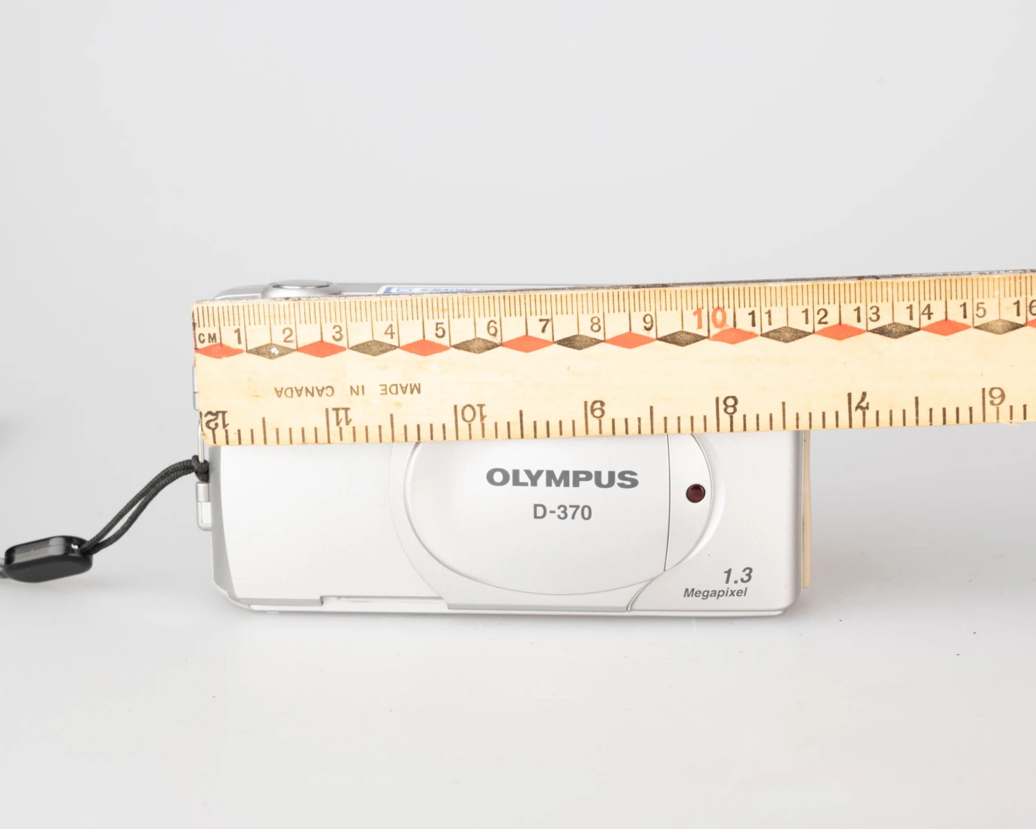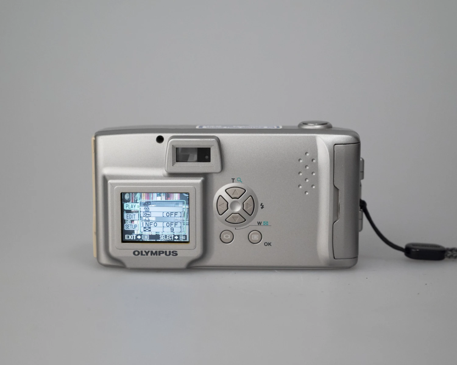 The Olympus Camedia D-D70 (called the C-100 in some countries) is a vintage digicam from 2001 featuring a 1.3 MP CCD sensor. It features a very small amount of built-in memory but also supports SmartMedia cards for extra storage. No SmartMedia card is included.