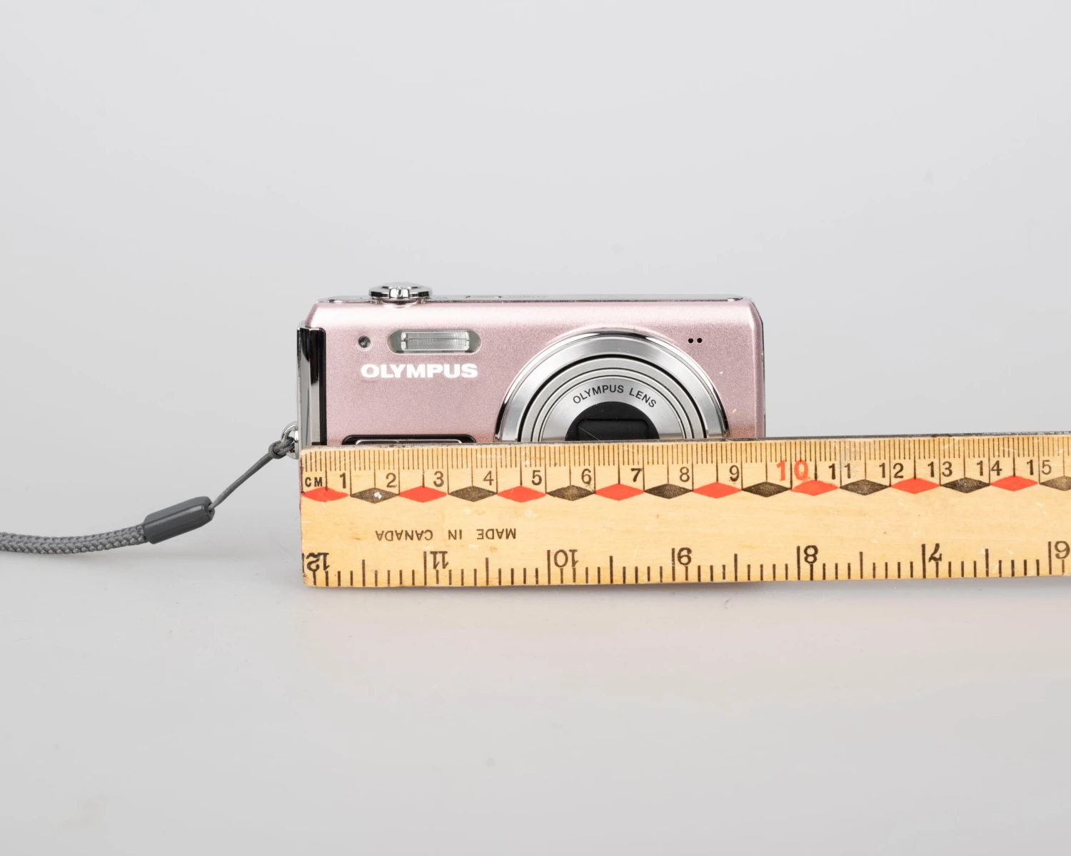 The Olympus FE-330 is an 8 megapixel CCD sensor digicam from 2008. This one features pink anondized metal body. The camera was also called the X-845 and C-550.