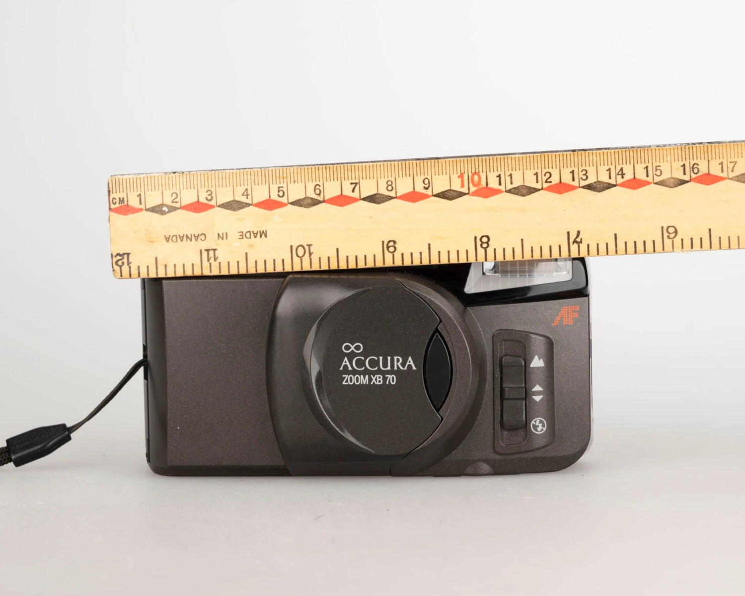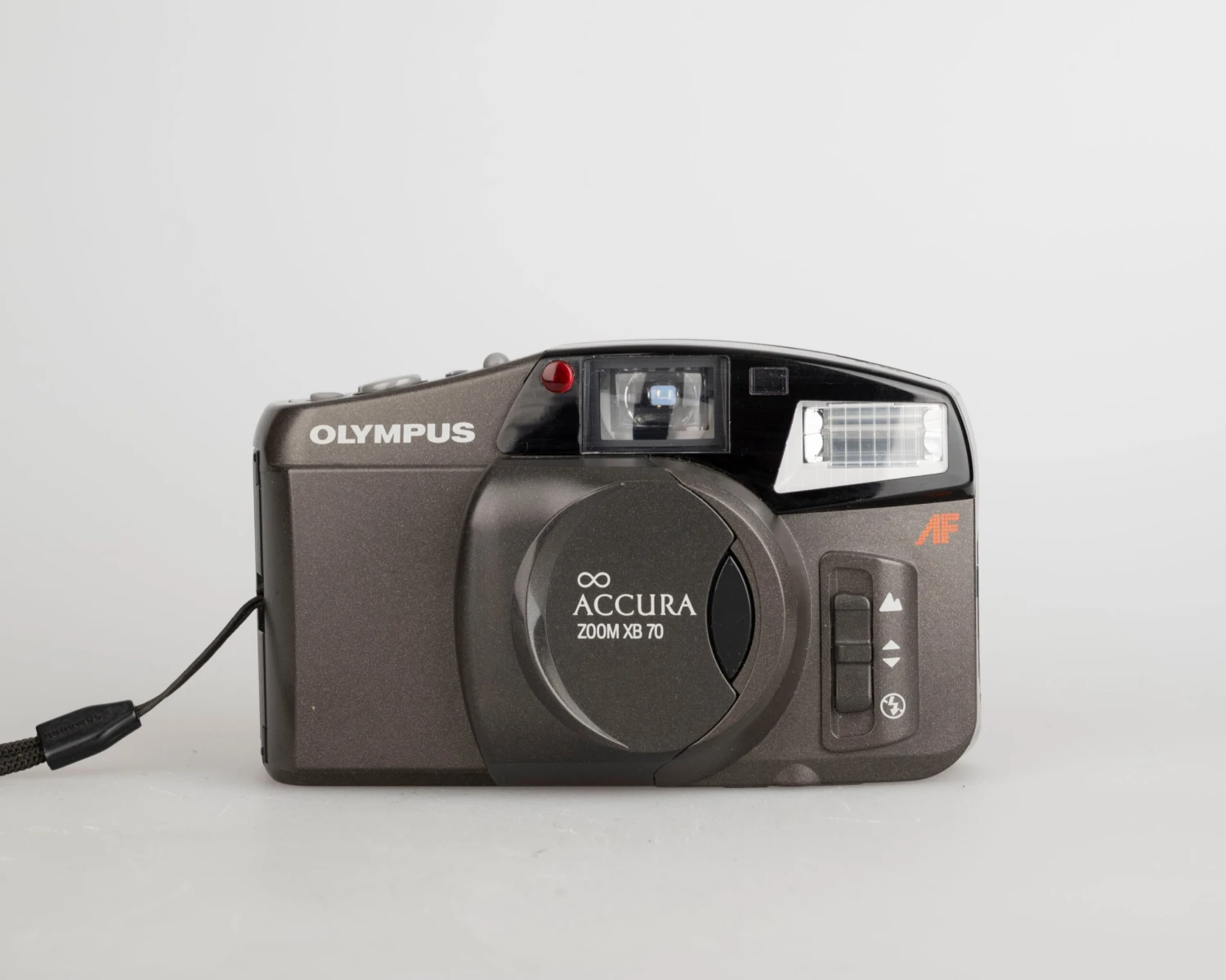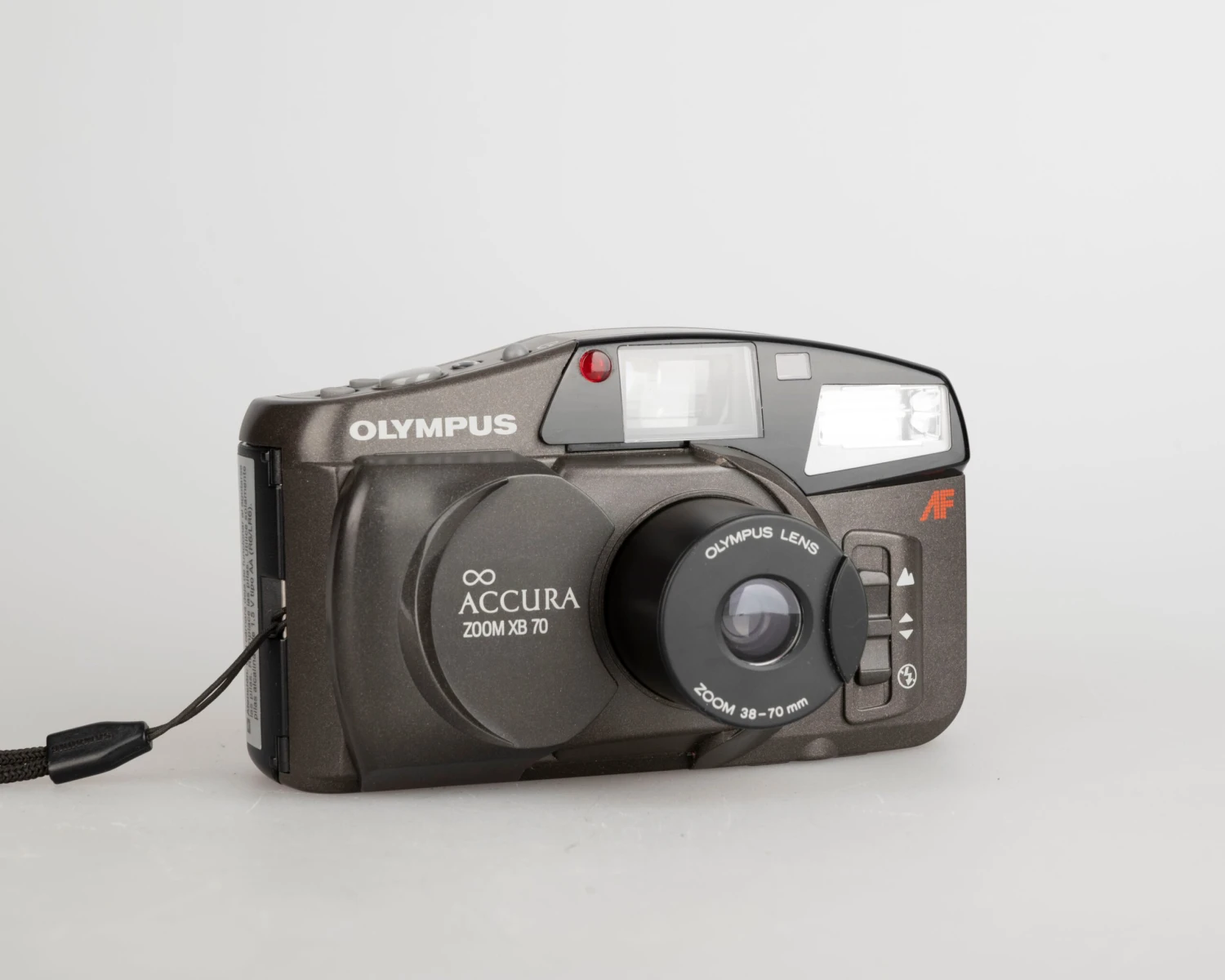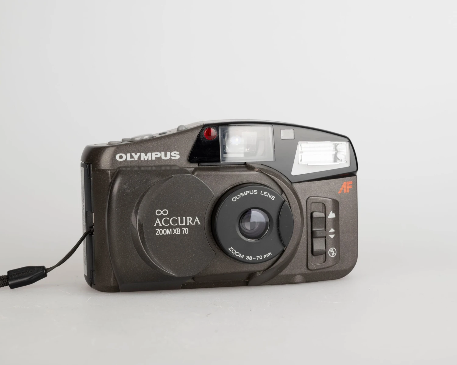 The Olympus Infinity Accura Zoom XB70 is a quality late-1990s 35mm point-and-shoot featuring a 38-70mm zoom. Besides minor cosmetic changes, it’s nearly identical to the Accura Zoom XB 700, described here: