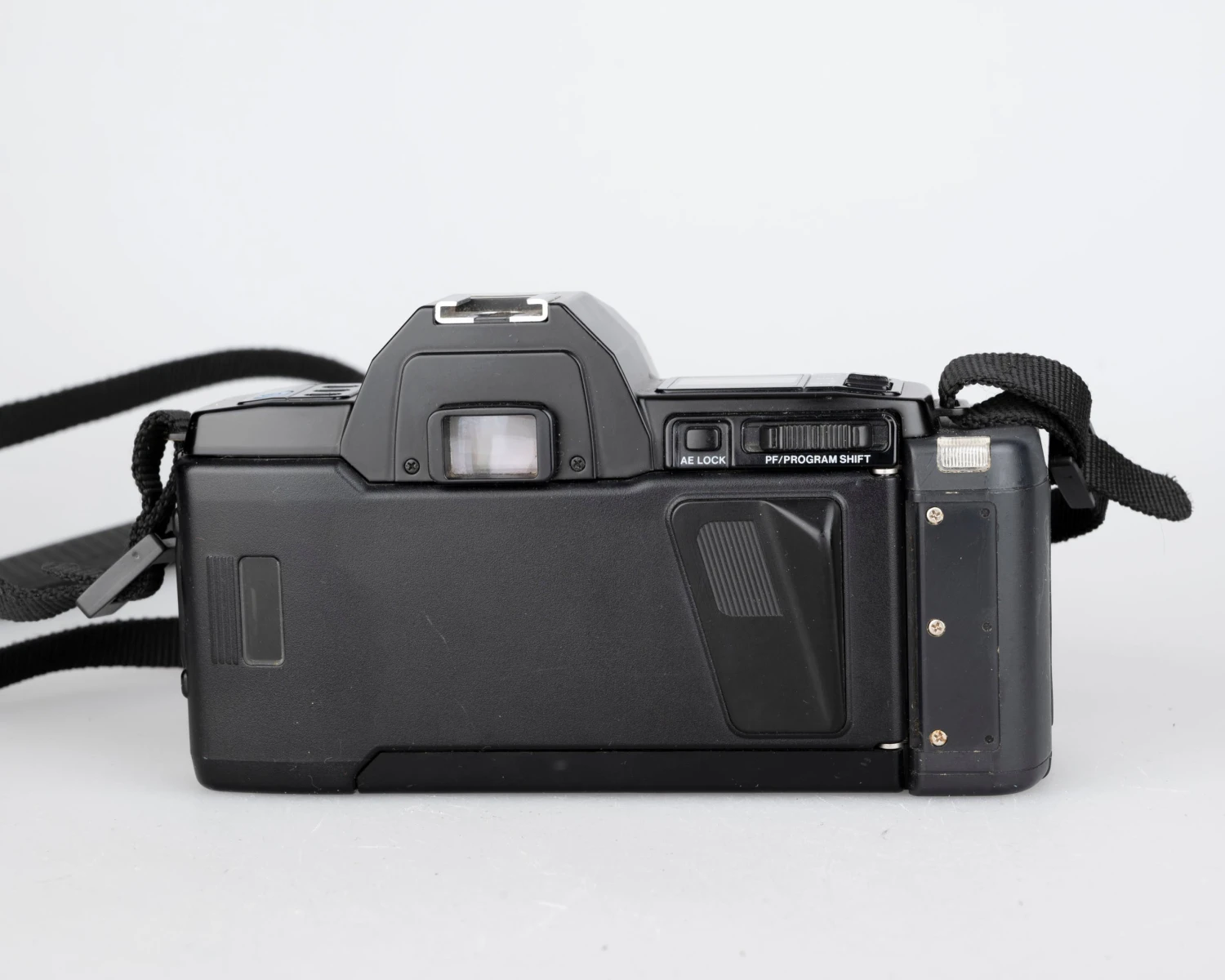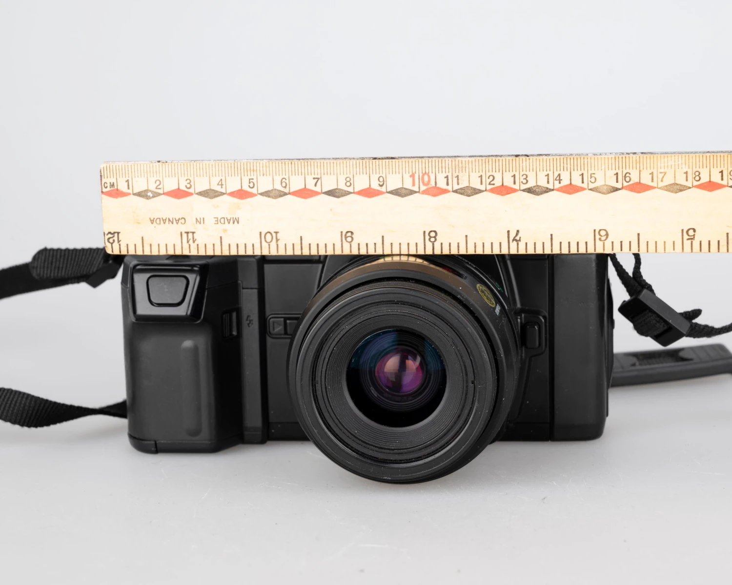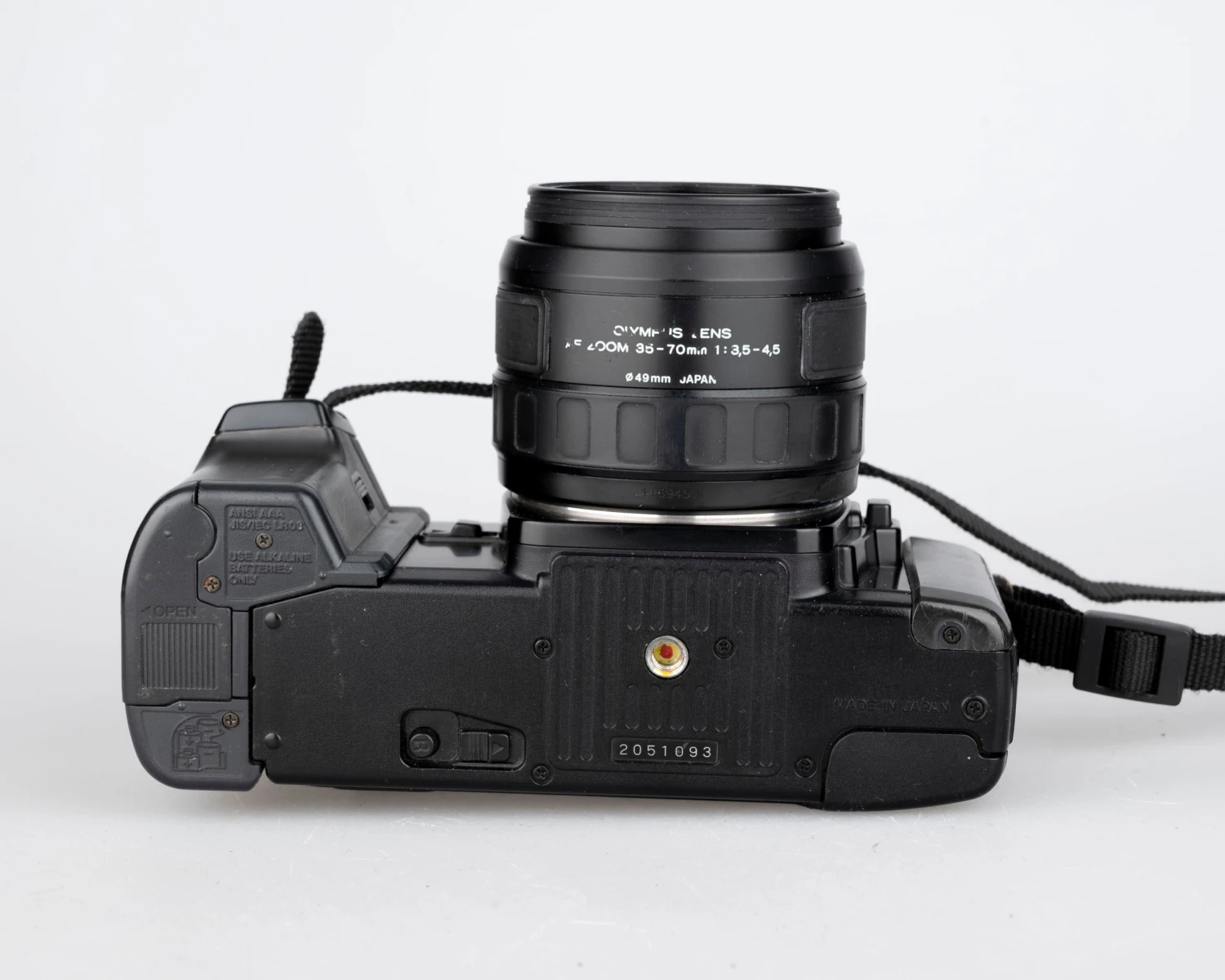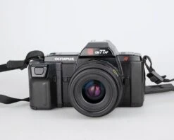 The circa 1986 Olympus OM-77AF (called the OM-707 in some countries) was the company’s response to Minolta Maxxum 7000. This technologically advanced autofocus and motorized 35mm SLR would be the only true autofocus OM-series camera (but it’s compatible with manual focus OM lenses). The included lens is a compact and flexible Olympus OM 35-70mm 1:3.5-4.5 (9 elements in 8 groups). The camera also includes the ‘Powergrip 300’ which features a small, built-in flash (it also includes a hot-shoe which can be used for larger flashes).