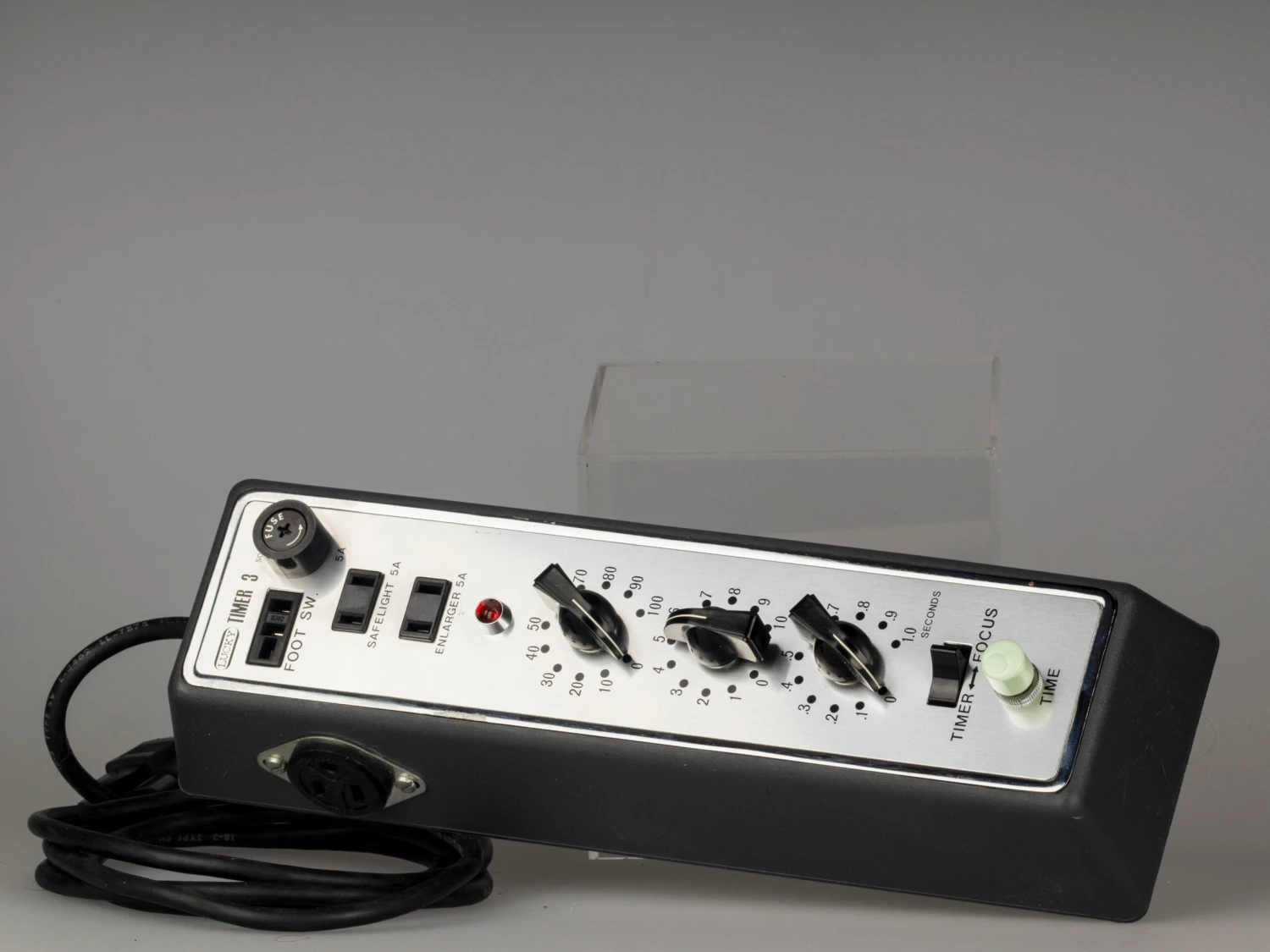 We enjoyed using it as a footswitch for printing negatives that required multiple bursts with dodging and burning. This timer also features a 3 pin Cinch Jones style receptacle for wiring your own remote footswitch.