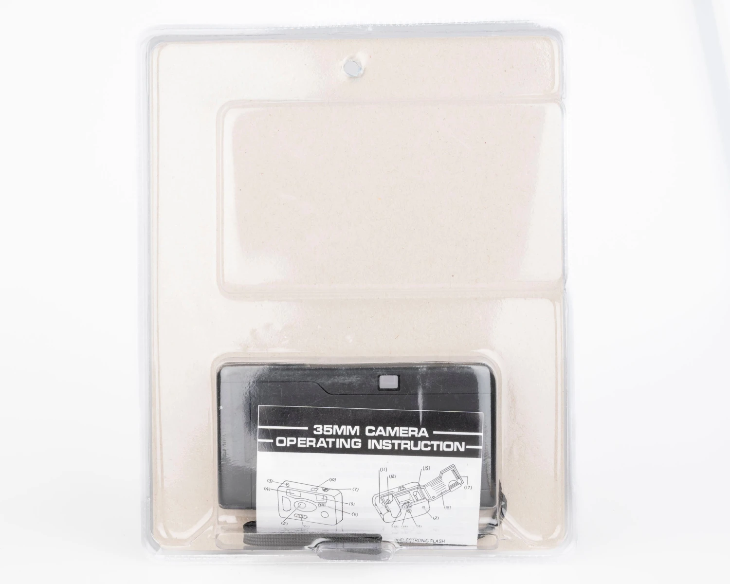 This is a new old stock camera from the 1990s still sealed in its original packaging. Some photos show a used version of the same camera to give a better idea of its features and size.