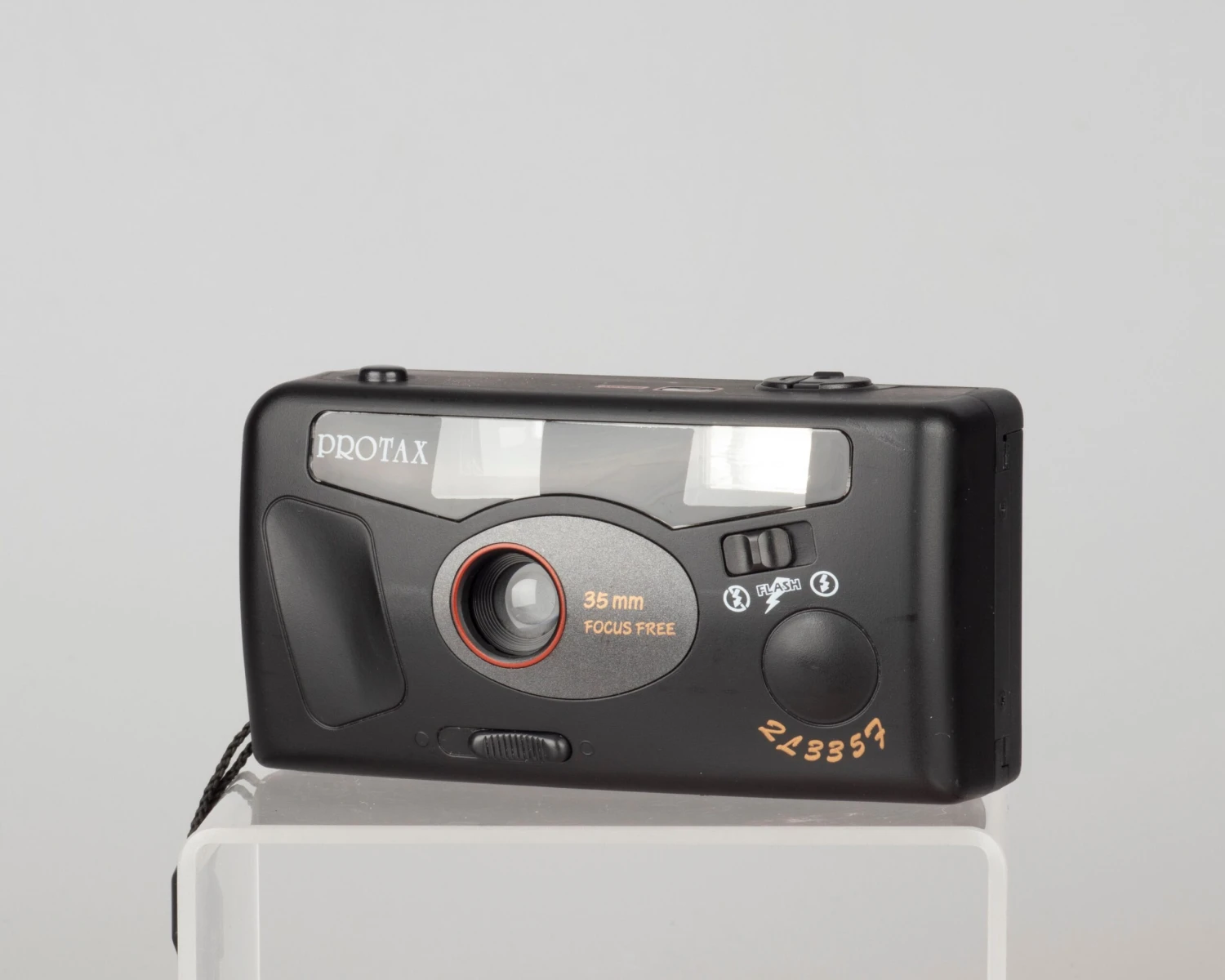 The Protax 35mm Focus Free is a very simple mechanical camera with a built-in flash.