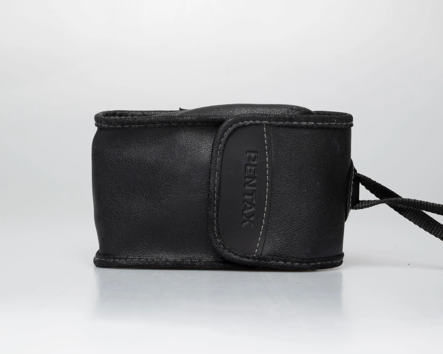 The camera was tested with a battery and film installed and all functions are working well (we didn’t develop the film). We verified the film plane focus accuracy on an autocollimator. The camera is in good cosmetic condition (see photos) with some minor wear from use. An original Pentax case is included.