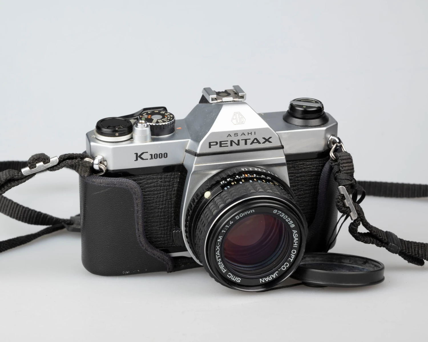 Note: the K-1000’s light-meter switches on if light is detected so use the lens cap (included, attached to the strap) to preserve battery life. If you remember to do this, the battery can last for years.