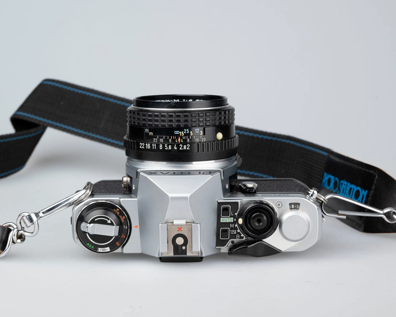 This camera comes with a sharp SMC Pentax-M 50mm F2 lens and its original manual in English.