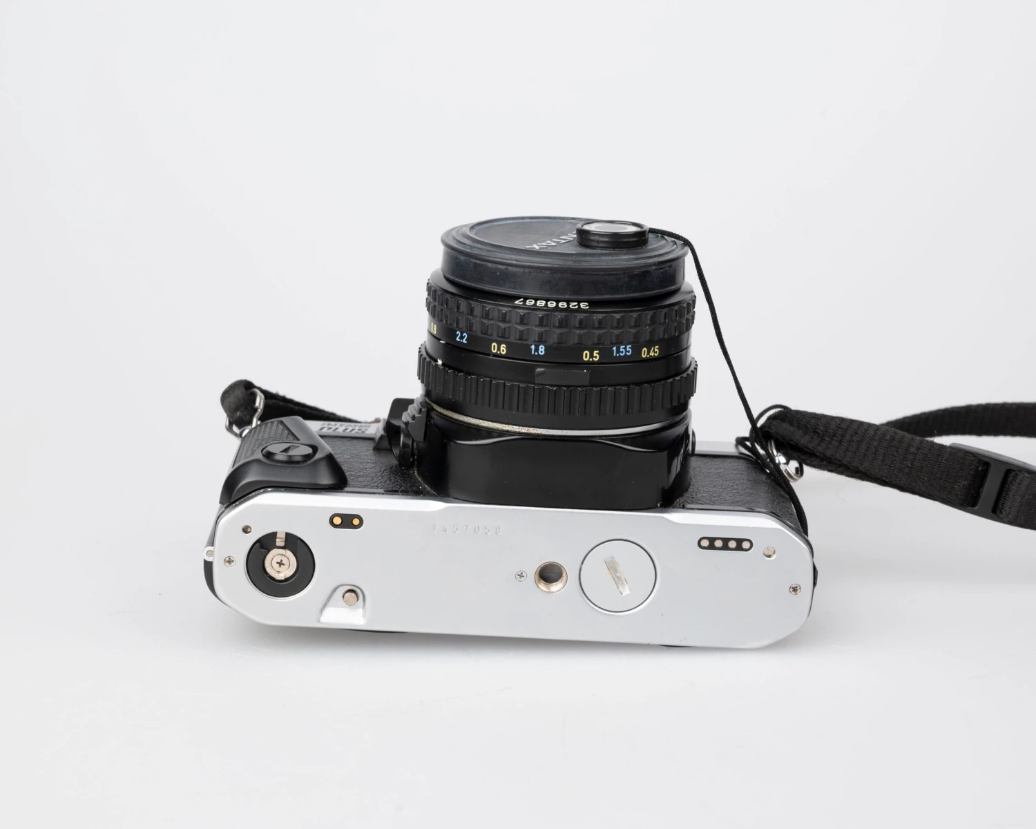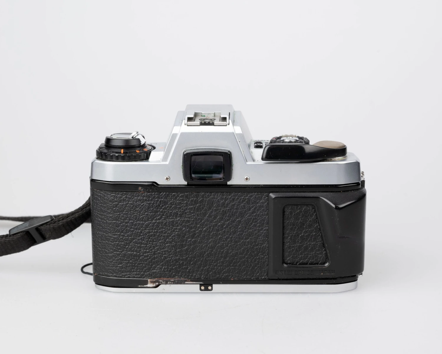 - Viewfinder: Silver-coated pentaprism finder with split-image/microprism focusing screen; shows 92% of the picture area, 0.82X magnification with 50mm lens at infinity; —1.1 Diopter eyepiece.