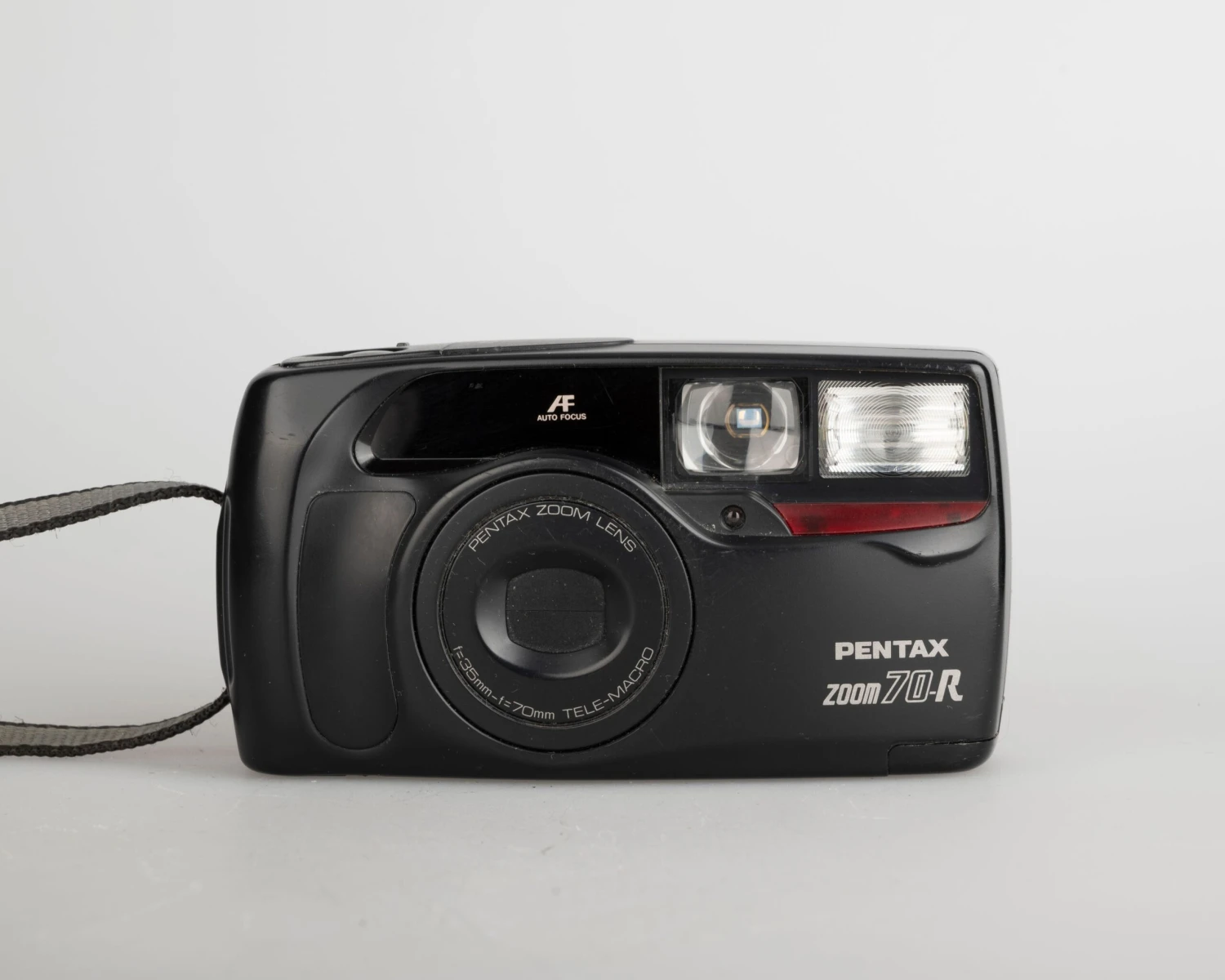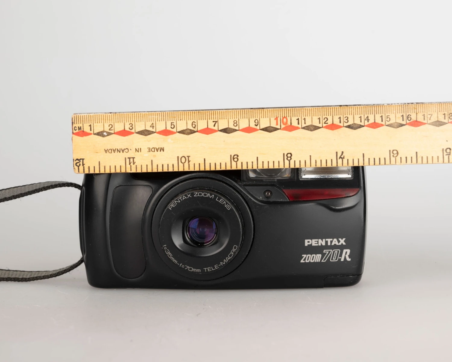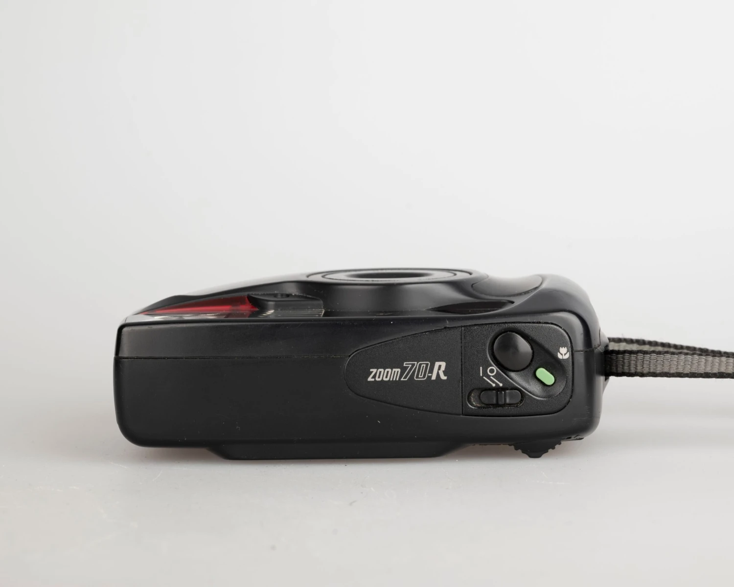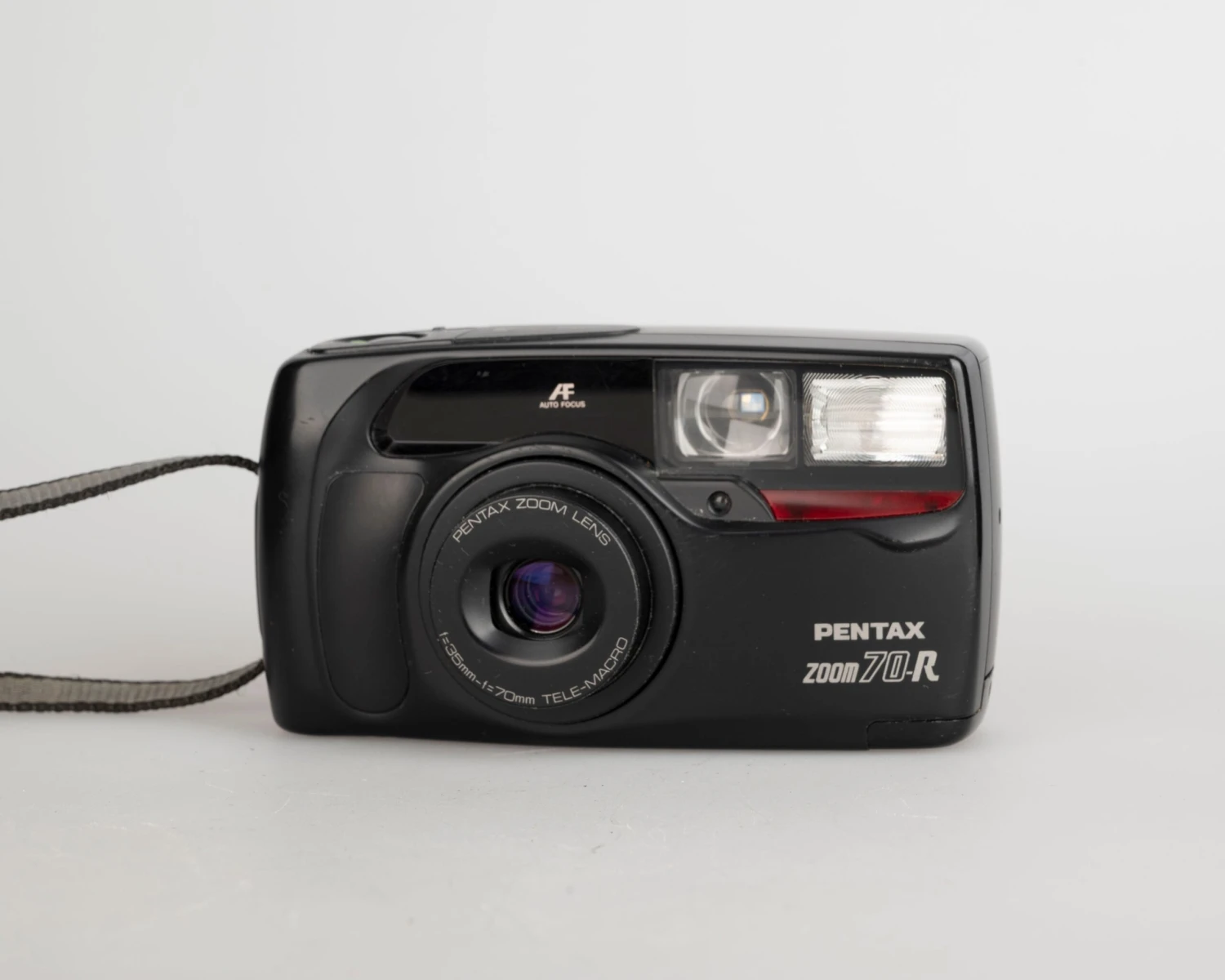 The Pentax Zoom 70-R is a high quality 35mm point-and-shoot from the early 1990s. It features a sharp 35-70mm zoom lens. It’s a very easy to use camera in its basic functionality but also offers a number of advanced features (eg multiple exposures, bulb plus flash, macro focusing) for people who want to go deep.