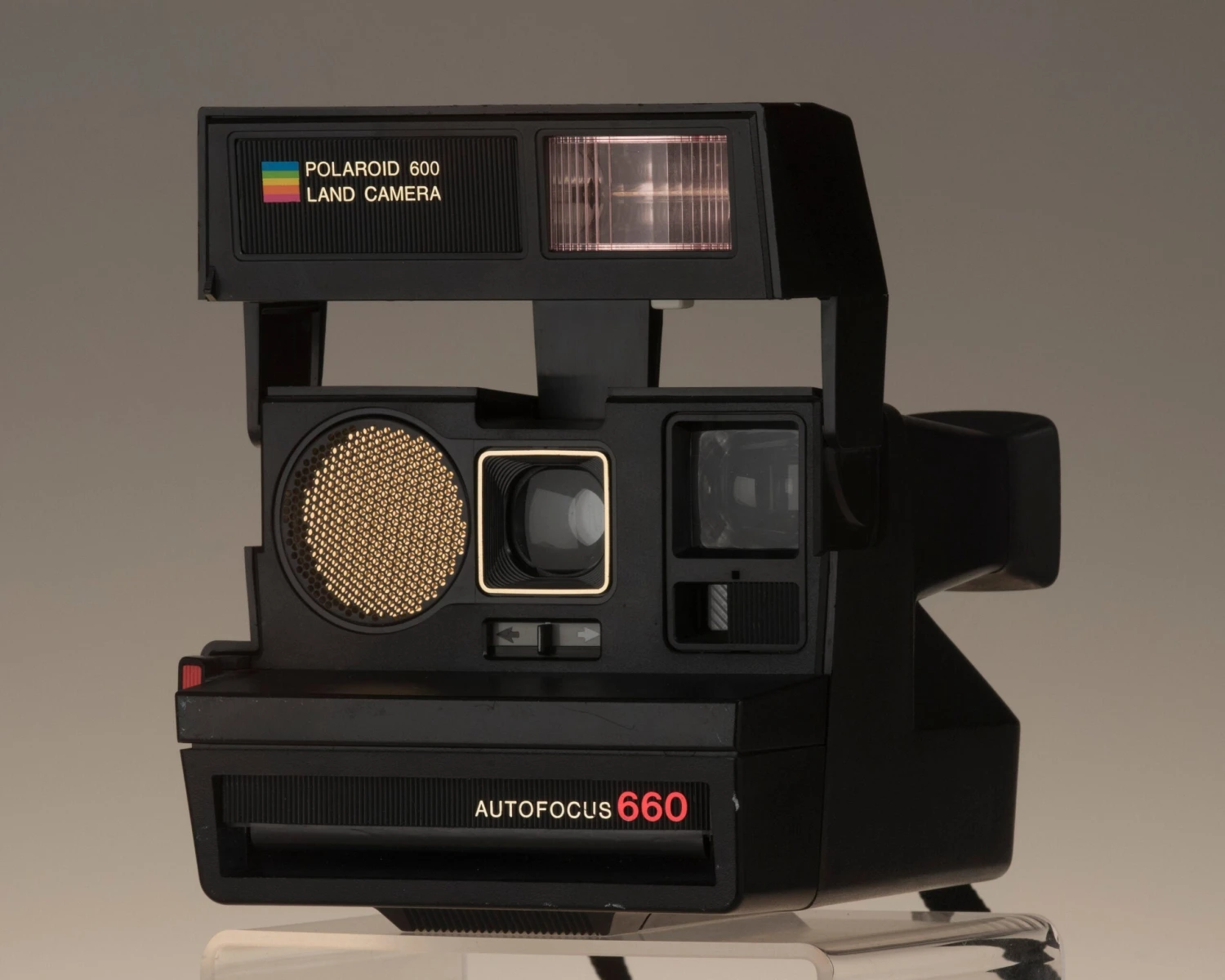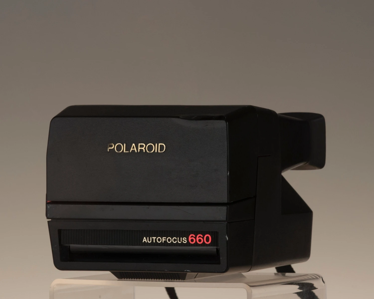 The Polaroid Autofocus 600 Land Camera (also sold as the Polaroid Sun 660 Autofocus) is a 600 series instant film camera with sonar auto-focus (the beautiful golden disk beside the camera’s lens).