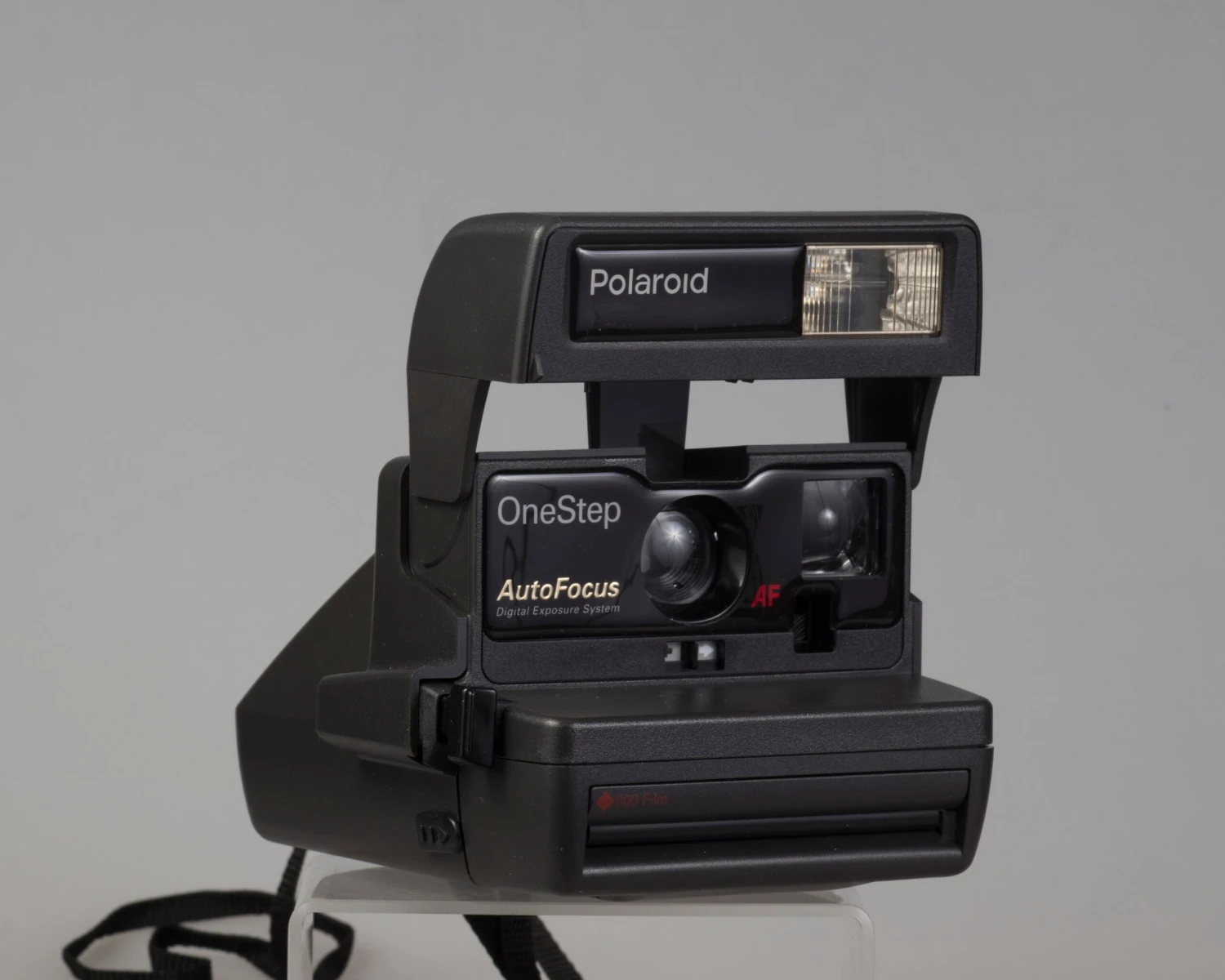 This is a nice clean Polaroid 600 compatible camera from the 90s. We weren’t able to locate much information about this model online but it appears to be a more sophisticated variant of the very popular OneStep CloseUp.