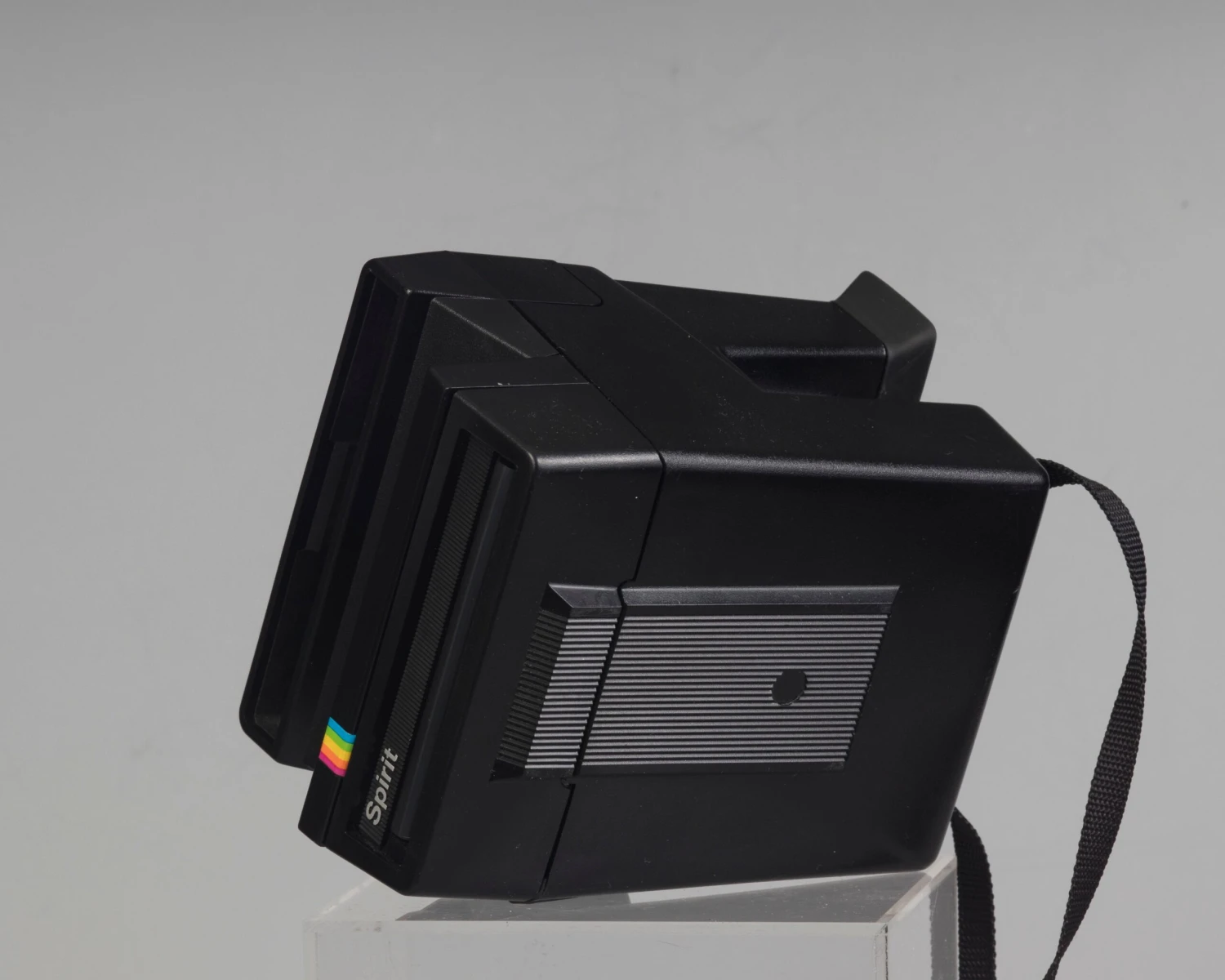 The Polaroid Spirit was one of the first cameras designed to use type 600 film (this film is still available today from Polaroid Originals and sold at most cameras stores). It’s a relatively simple camera with a very striking angular styling that differs from later models.