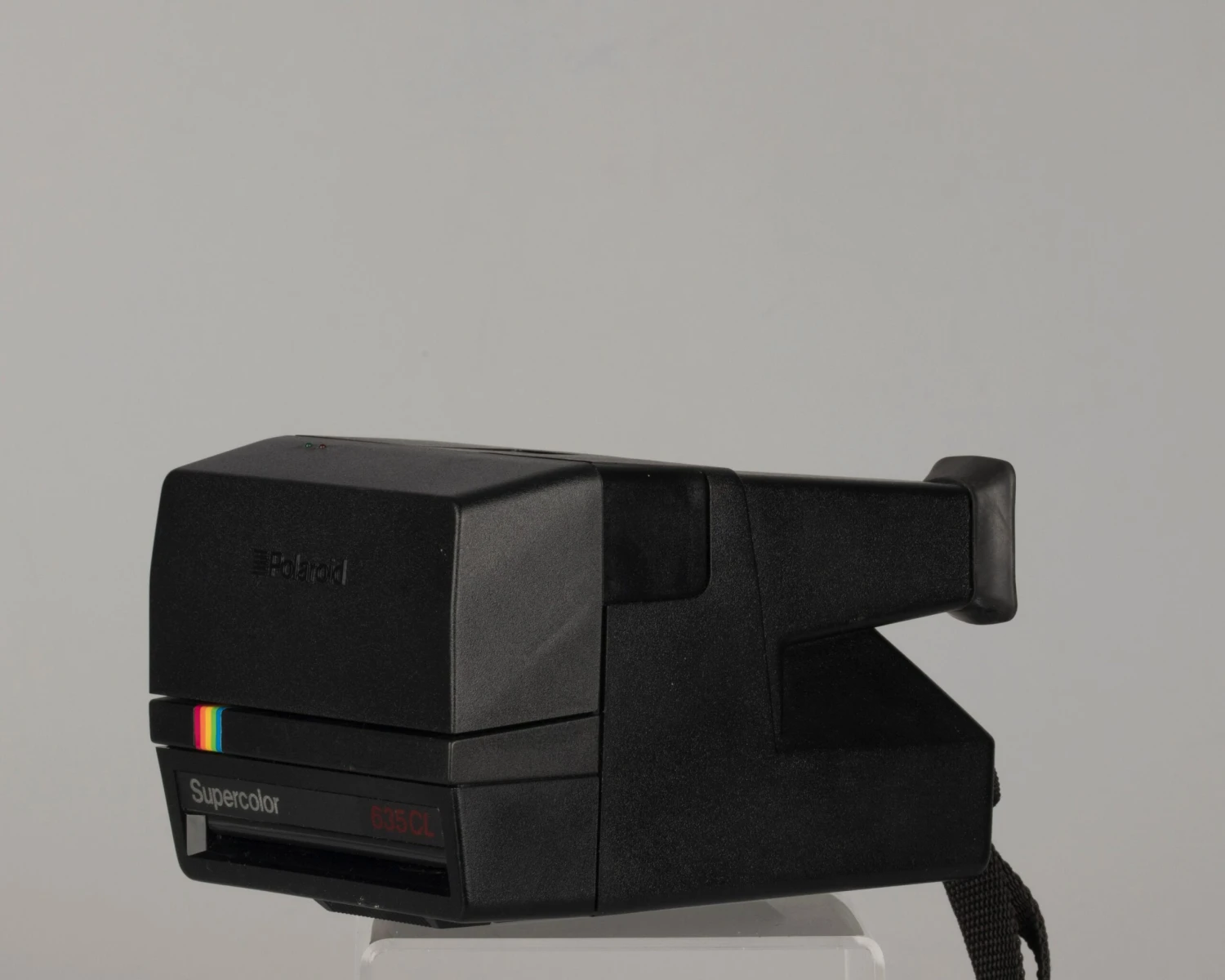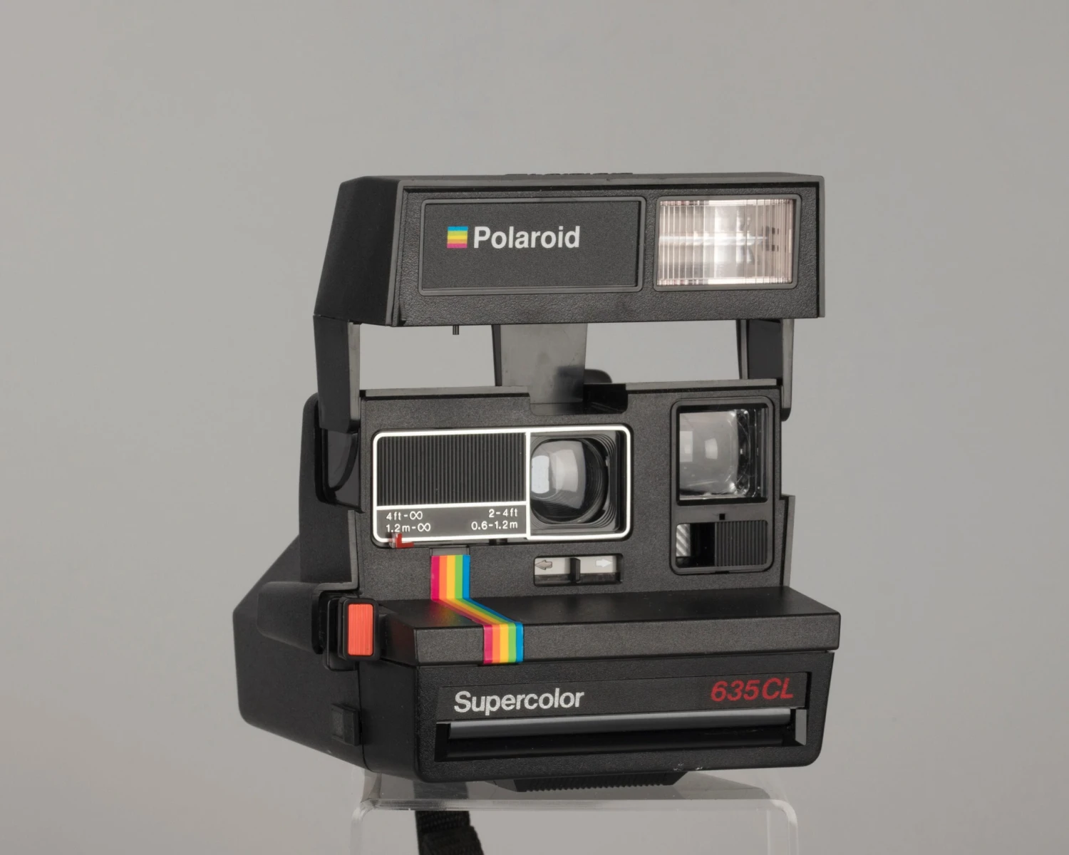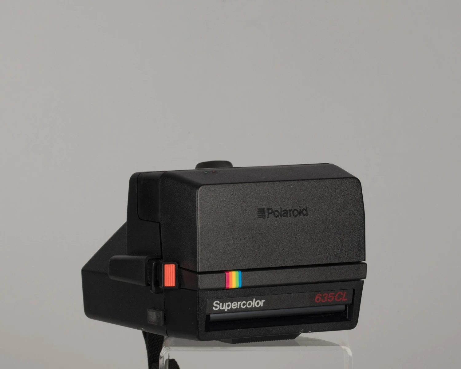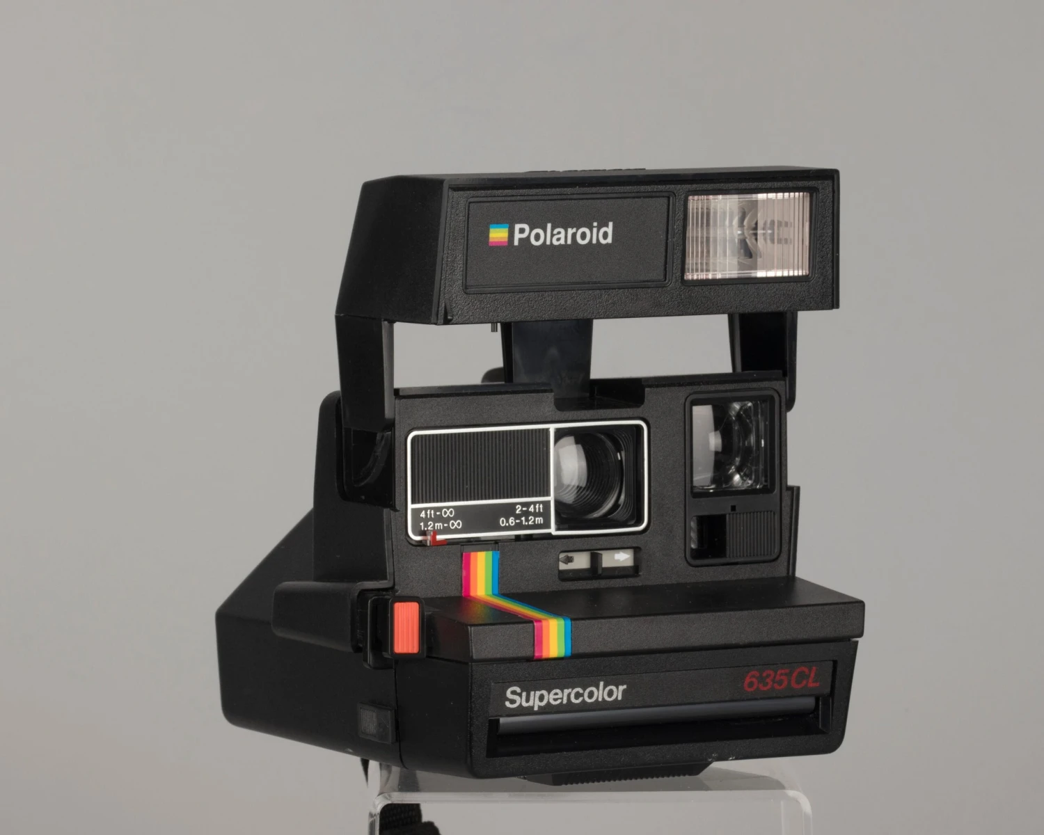 The Polaroid Supercolor 635CL is a classic instant camera from the 80s featuring the company’s iconic rainbow motif. It is compatible with type 600 Polaroid films. It offers both a fixed focus lens where everything from about 4 feet to infinity should be in focus in good light and a close-up lens mode for subjects between 2 to 4 feet away.