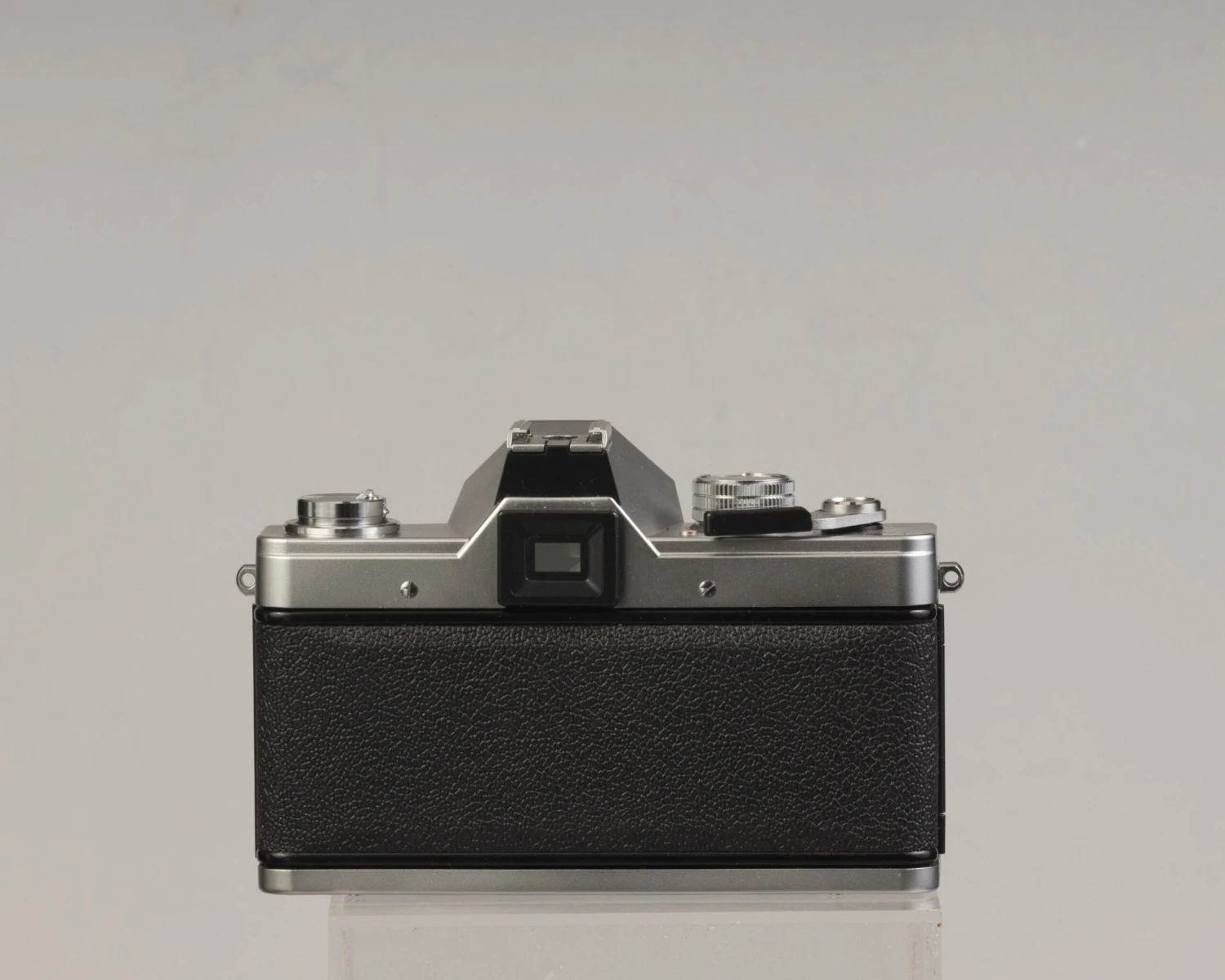 The camera and lens are in excellent aesthetic and functional condition; it was tested with film and delivered sharp, correctly exposed images. In addition, its shutter speeds travel time accuracy and symmetry were tested as was its light meter.
