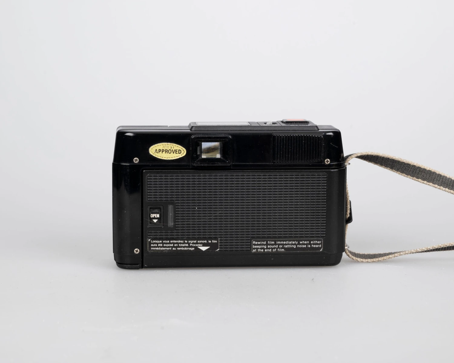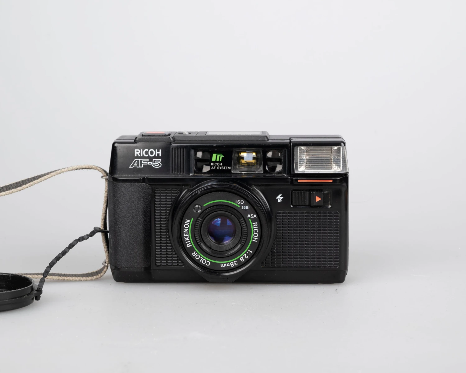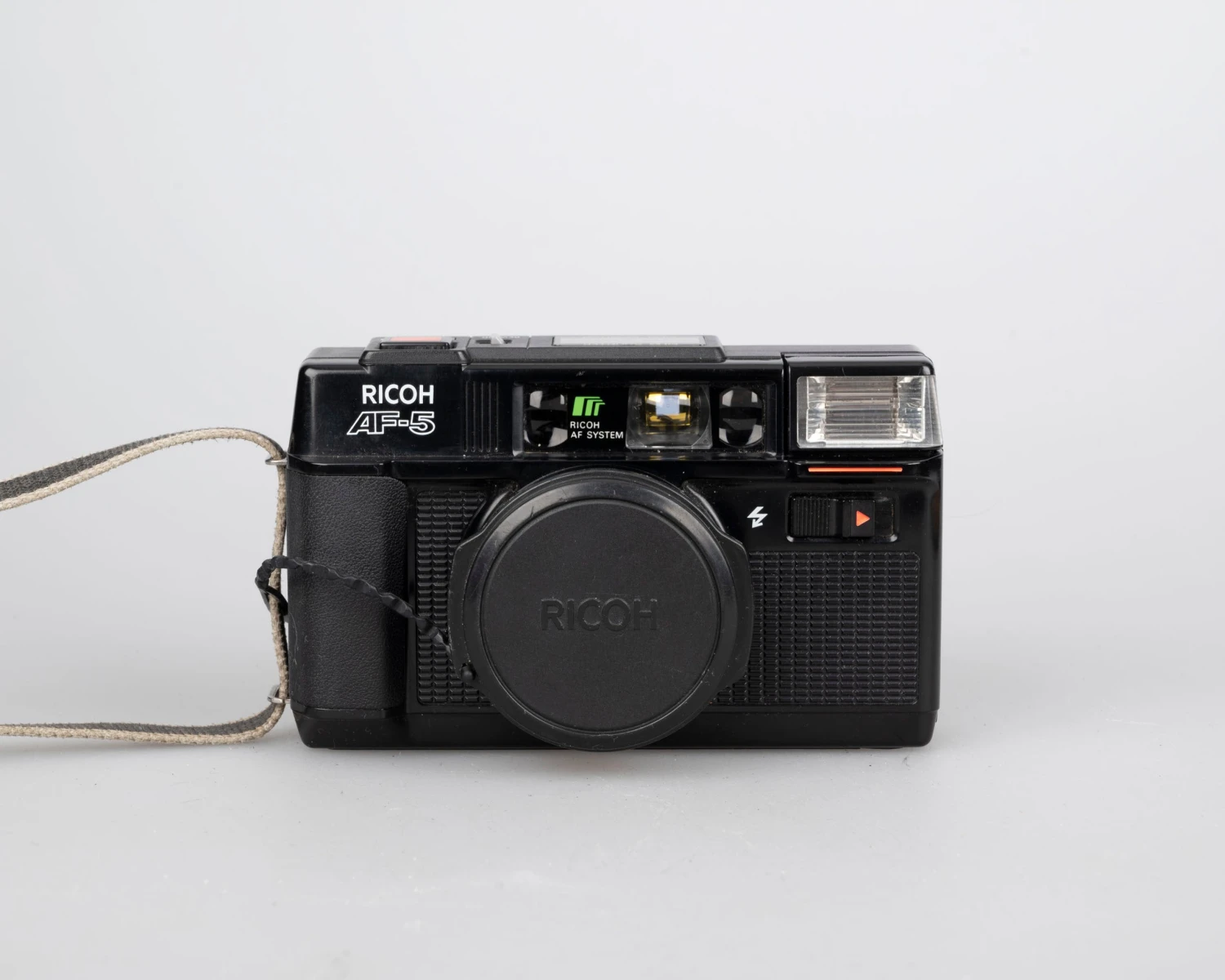The Ricoh AF-5 is a classic fixed lens point-and-shoot 35mm camera. It terms of lens quality and features, it’s comparable to the better-known Canon Sure Shot and Nikon One Touch cameras which were its original market competitors.