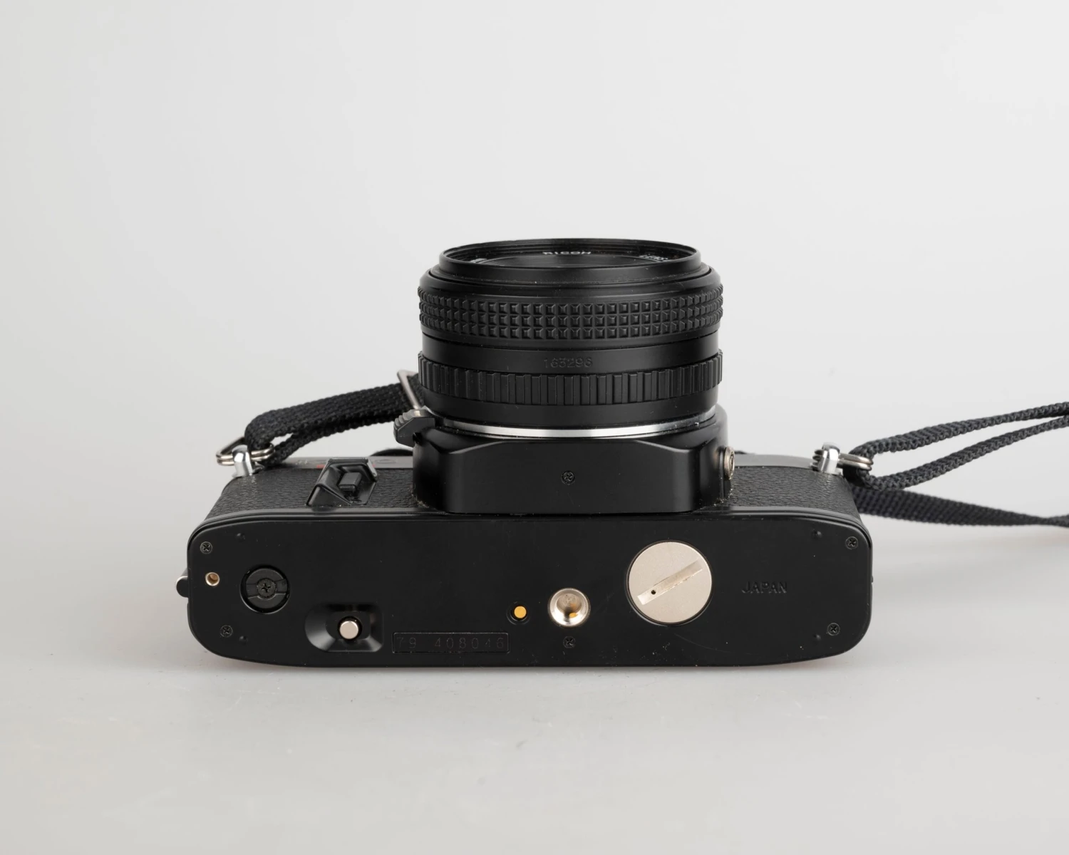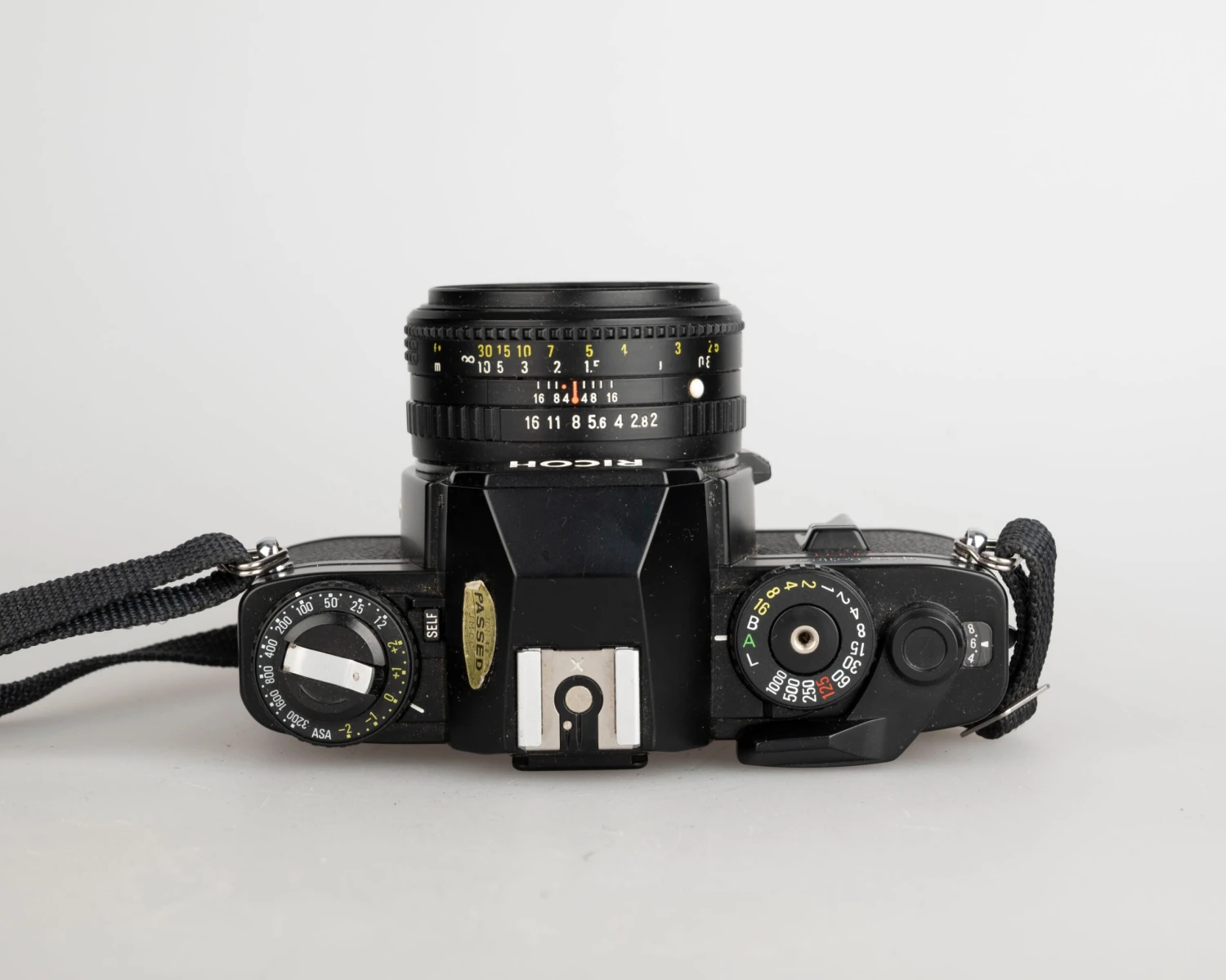 The included lens is a fast and sharp Rikenon 50mm f2. The camera uses the same lens mount (K-mount) as Pentax cameras like the K1000 and ME and it’s an excellent alternative to these better-known cameras.
