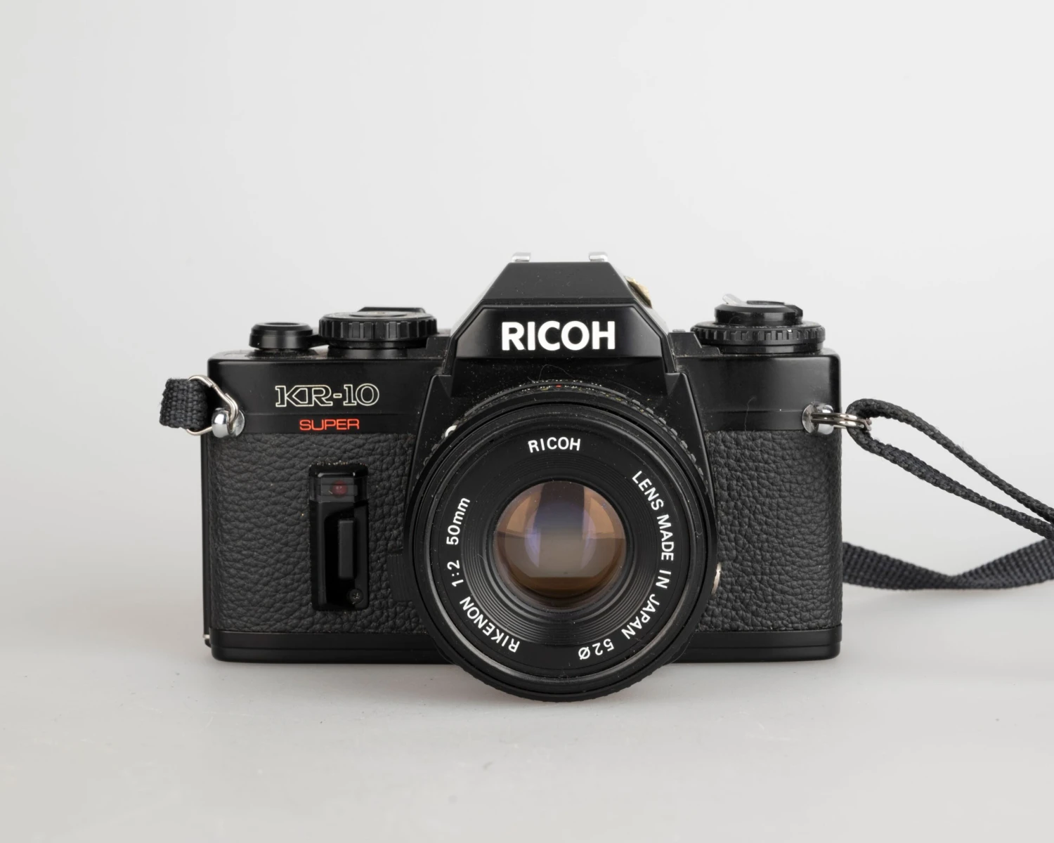 The Ricoh KR-10 Super is a quality 35mm SLR camera from the 1980s that offers both aperture priority auto-exposure and metered manual exposure modes. The LCD metering in the viewfinder is very informative and the camera offers a wide film speed support from ISO 12 to ISO 3200.
