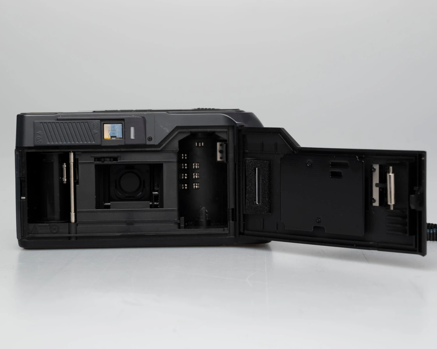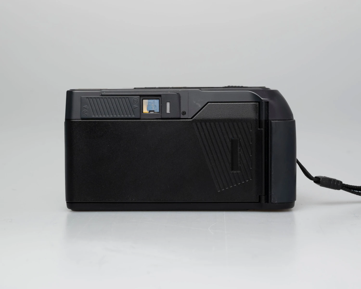 - LCD Display: Film loaded, Film advance. Film taken up onto film take-up spool, Exposure counter, Film reverse and reverse completion, Film Speed, DX