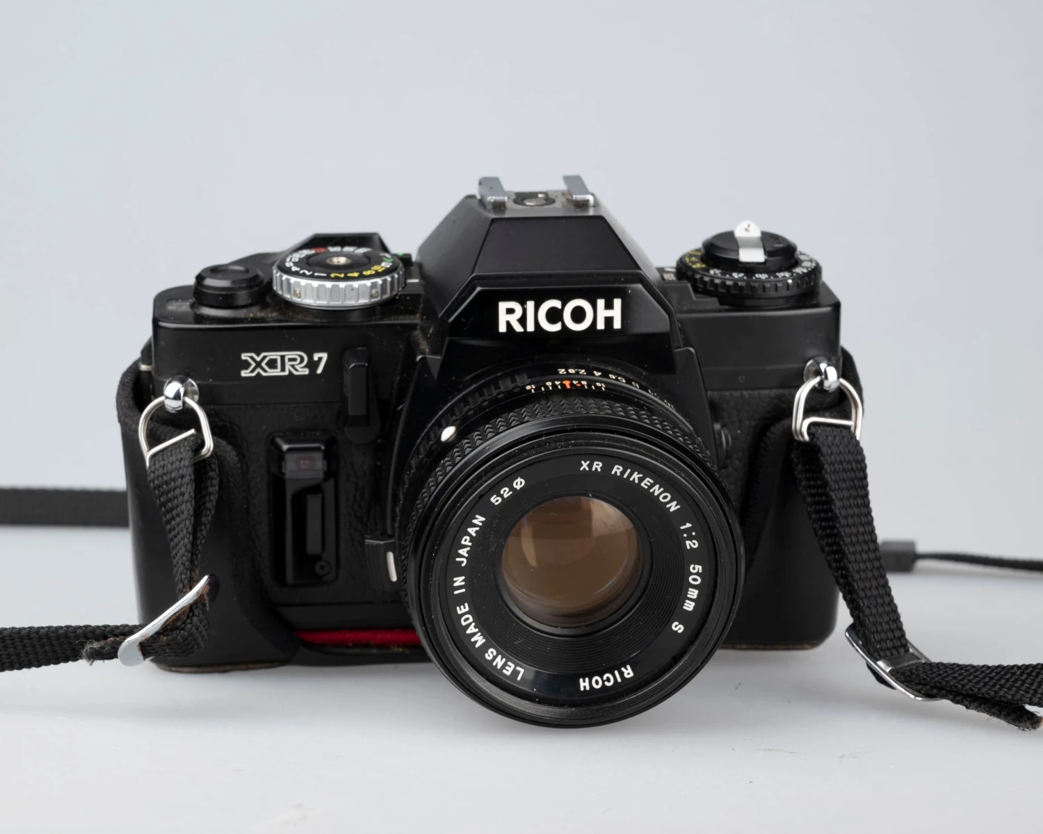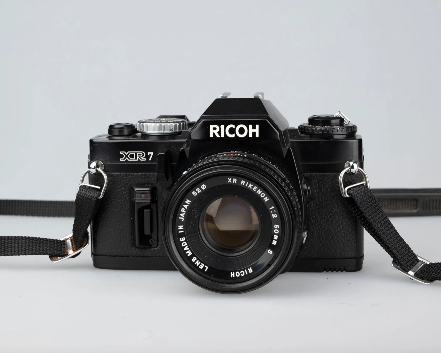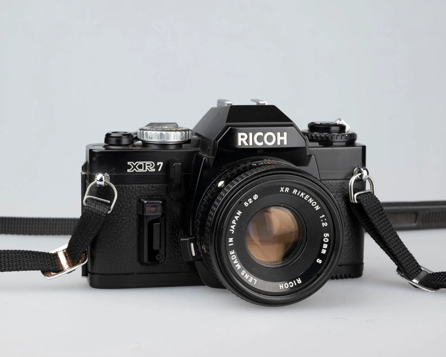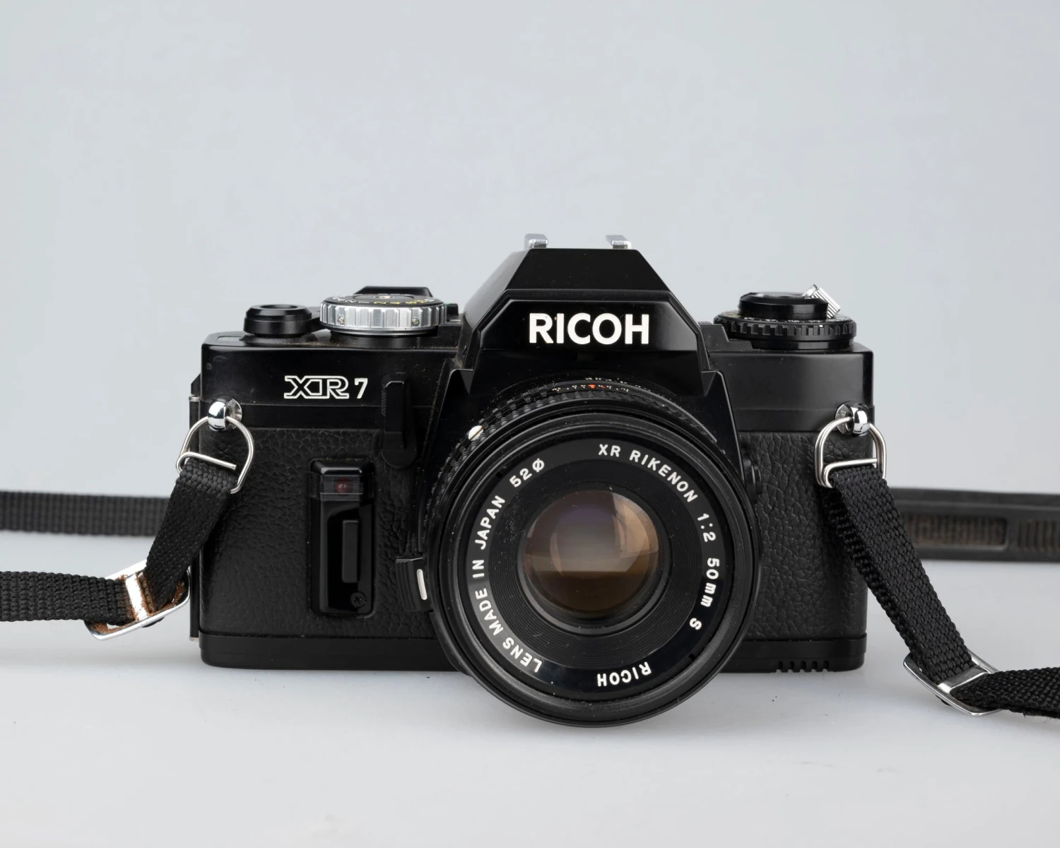 The Ricoh XR-7 is the most advanced camera in the company’s early 1980s lineup of 35mm film SLRs.