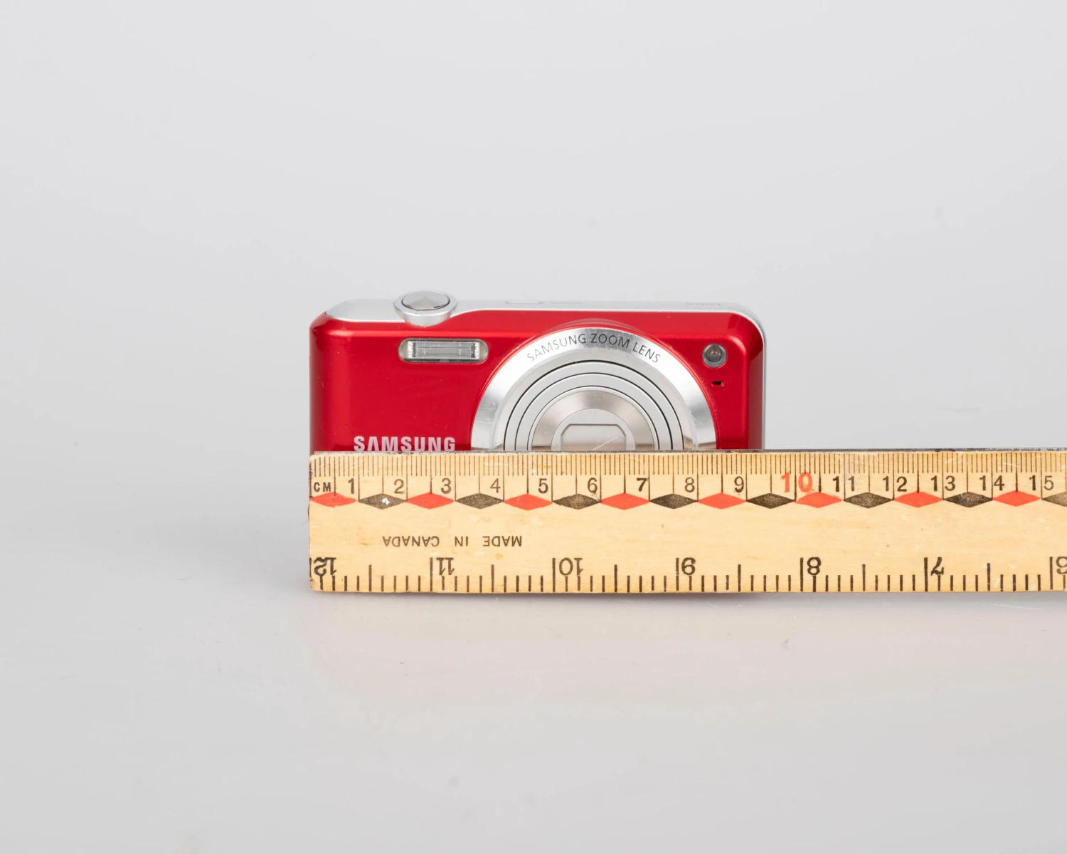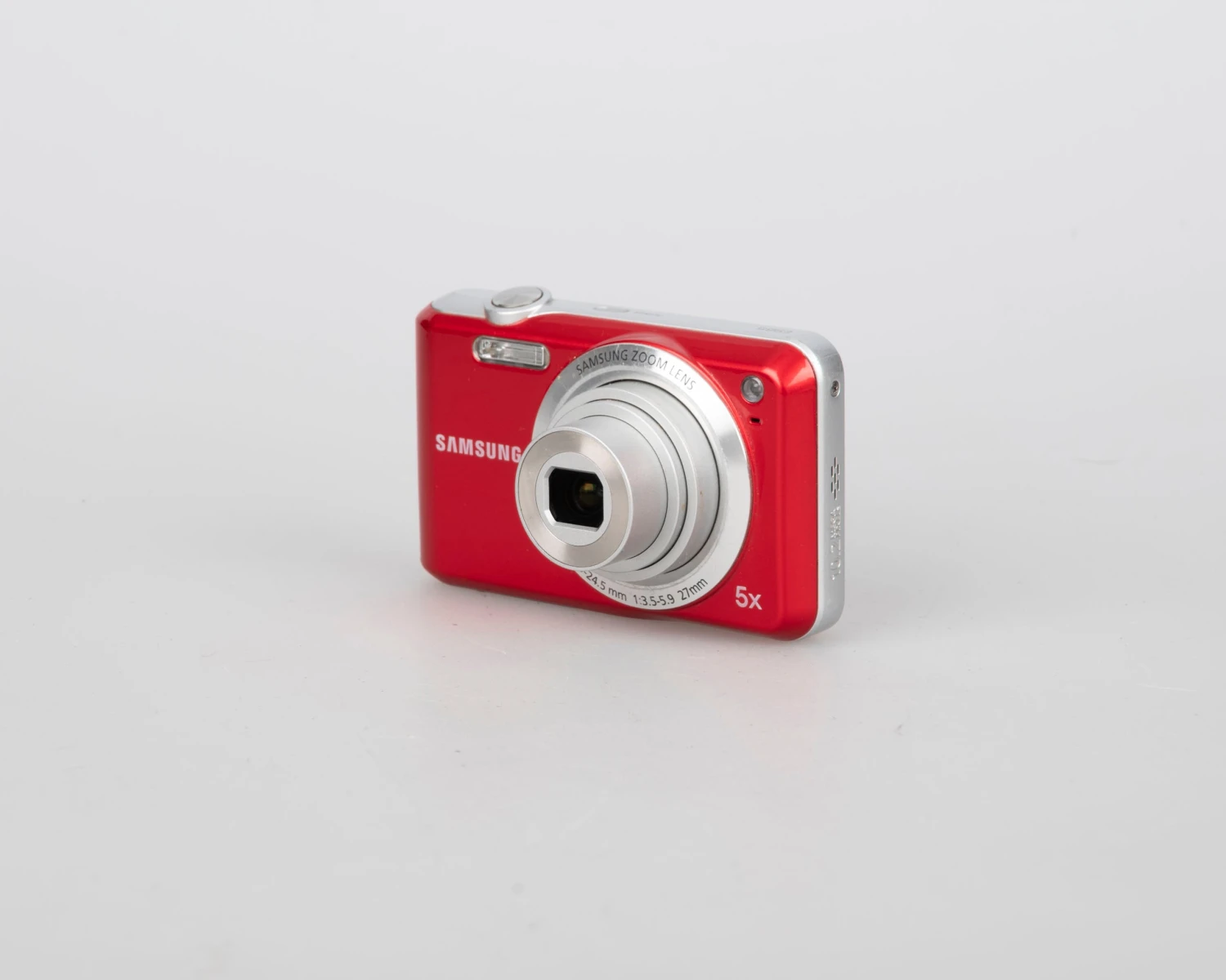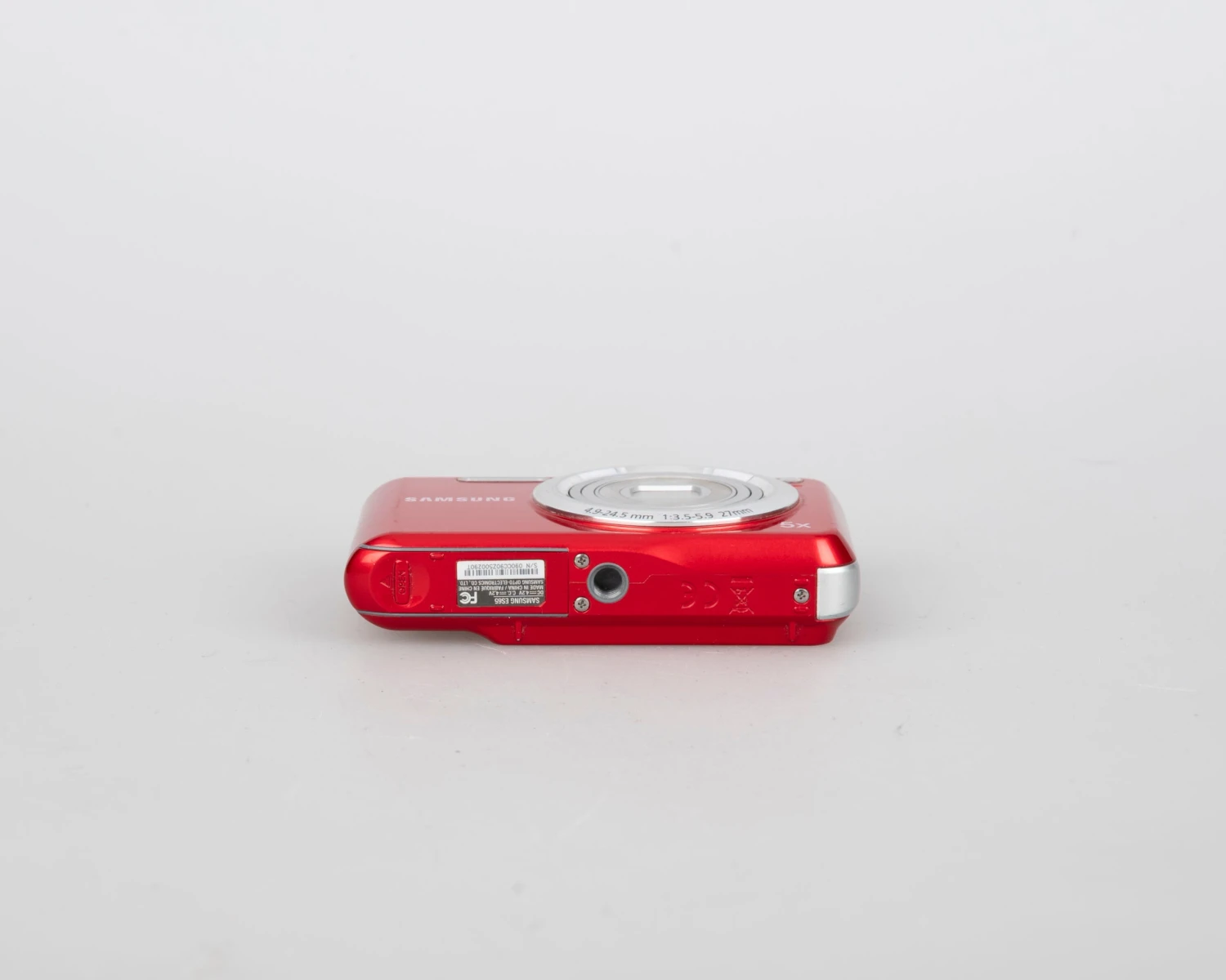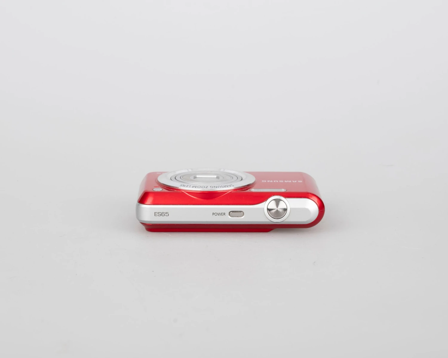 The circa-2010 Samsung ES65 is a compact, lightweight digicam featuring a 10-megapixel sensor and a 27-135mm (35mm equivalent) zoom lens. This is the version with a bright red body.