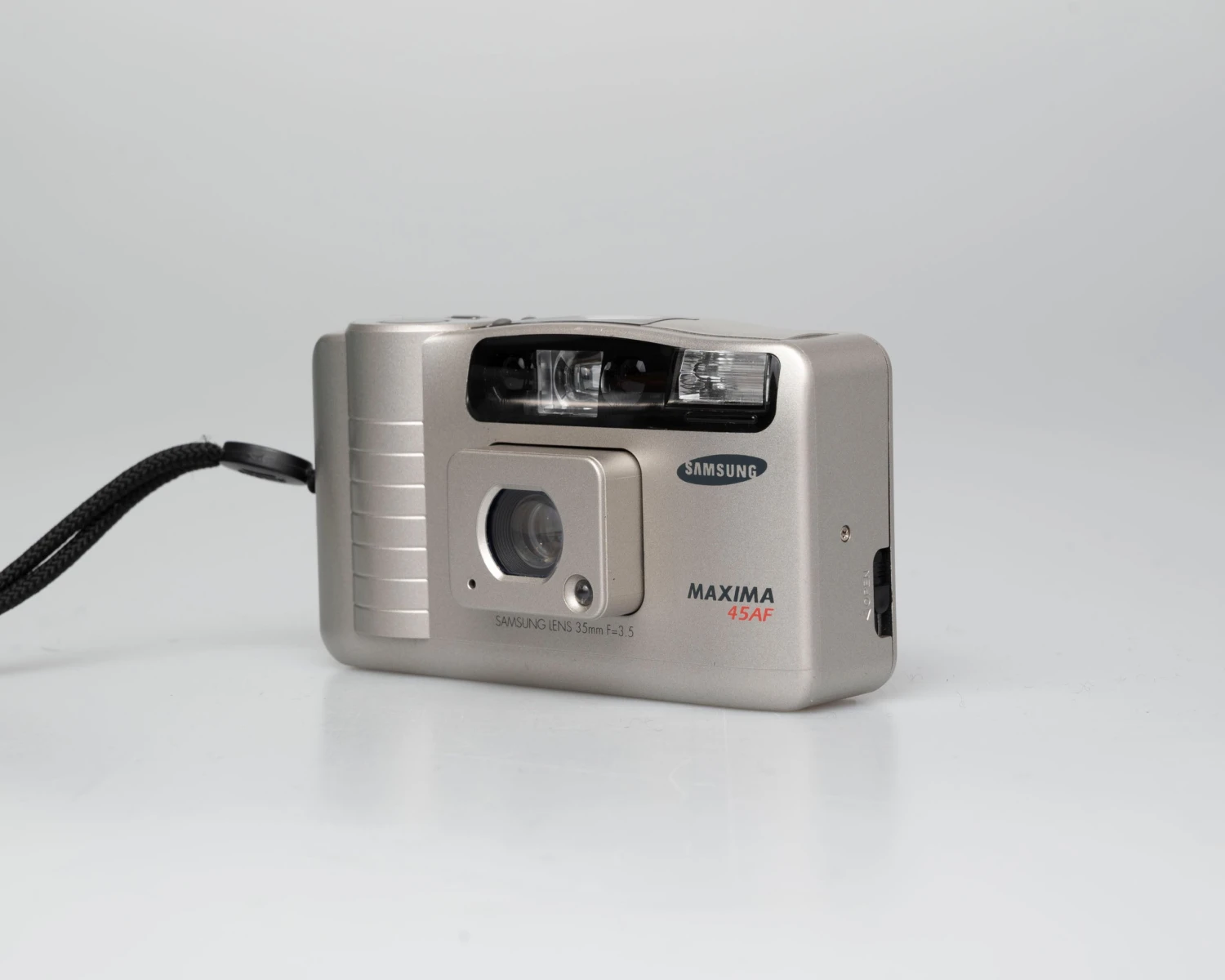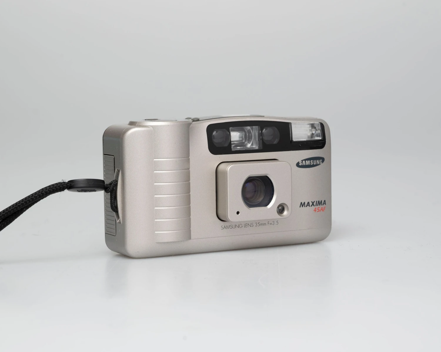 The Samsung Maxima 45AF (called the FIno 45 in some countries) is a high quality and very compact 35mm film point-and-shoot camera from the late 1990s. This Samsung camera is a strong performer and, like the earlier AF Slim, is quite clearly inspired by Konica’s Big Mini (its form factor isn’t quite as close as the AF Slim but it delivers results that are in our opinion very comparable).