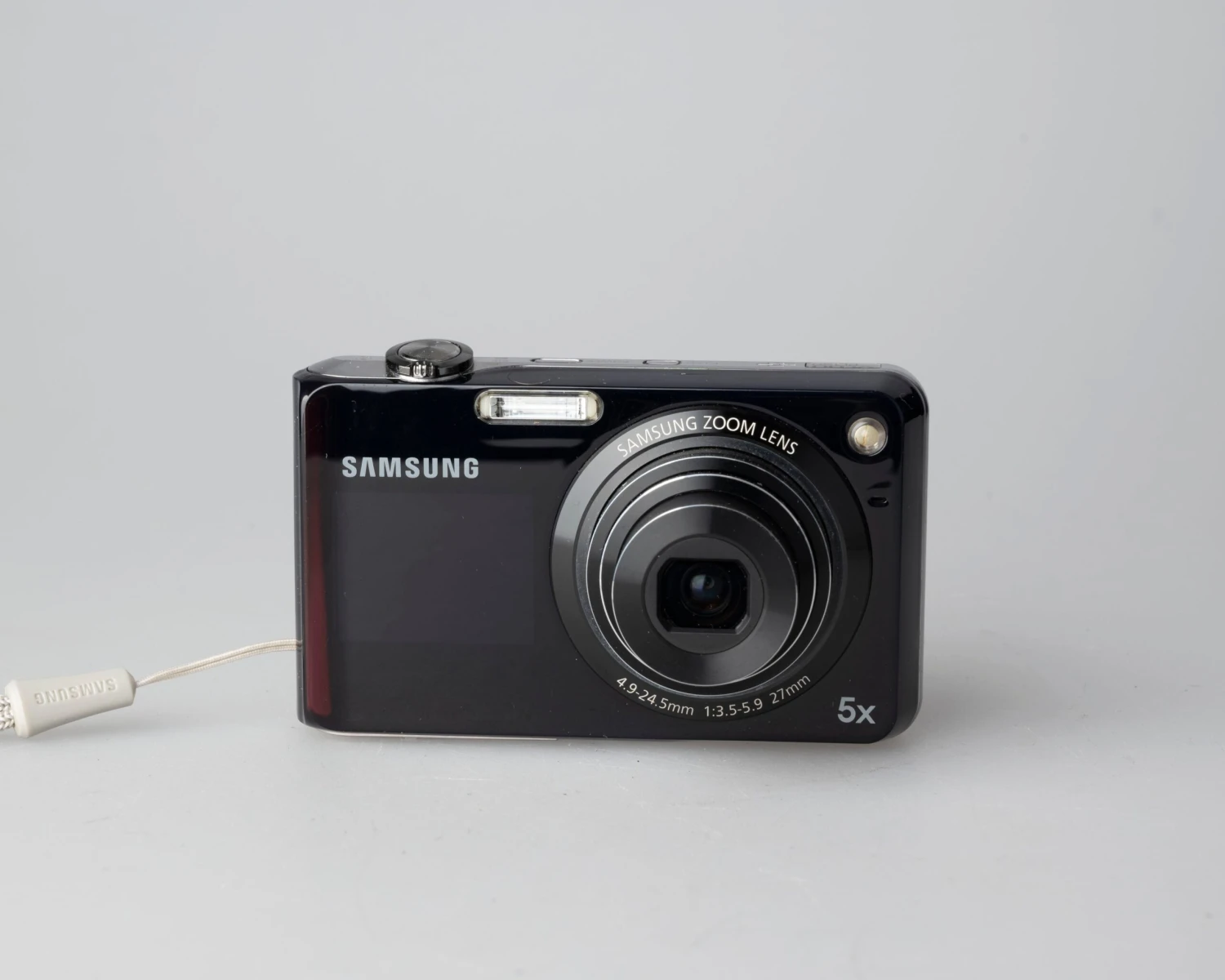 The circa-2010 Samsung PL150 is one of our favourite digicam designs. It features and unusual and very handy secondary front-facing screen which can be turned on with a summary (very handy for selfies and helping subjects pose). This camera uses a 12.4 megapixel CCD sensor and 27-135mm lens.