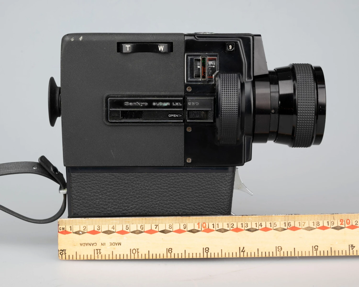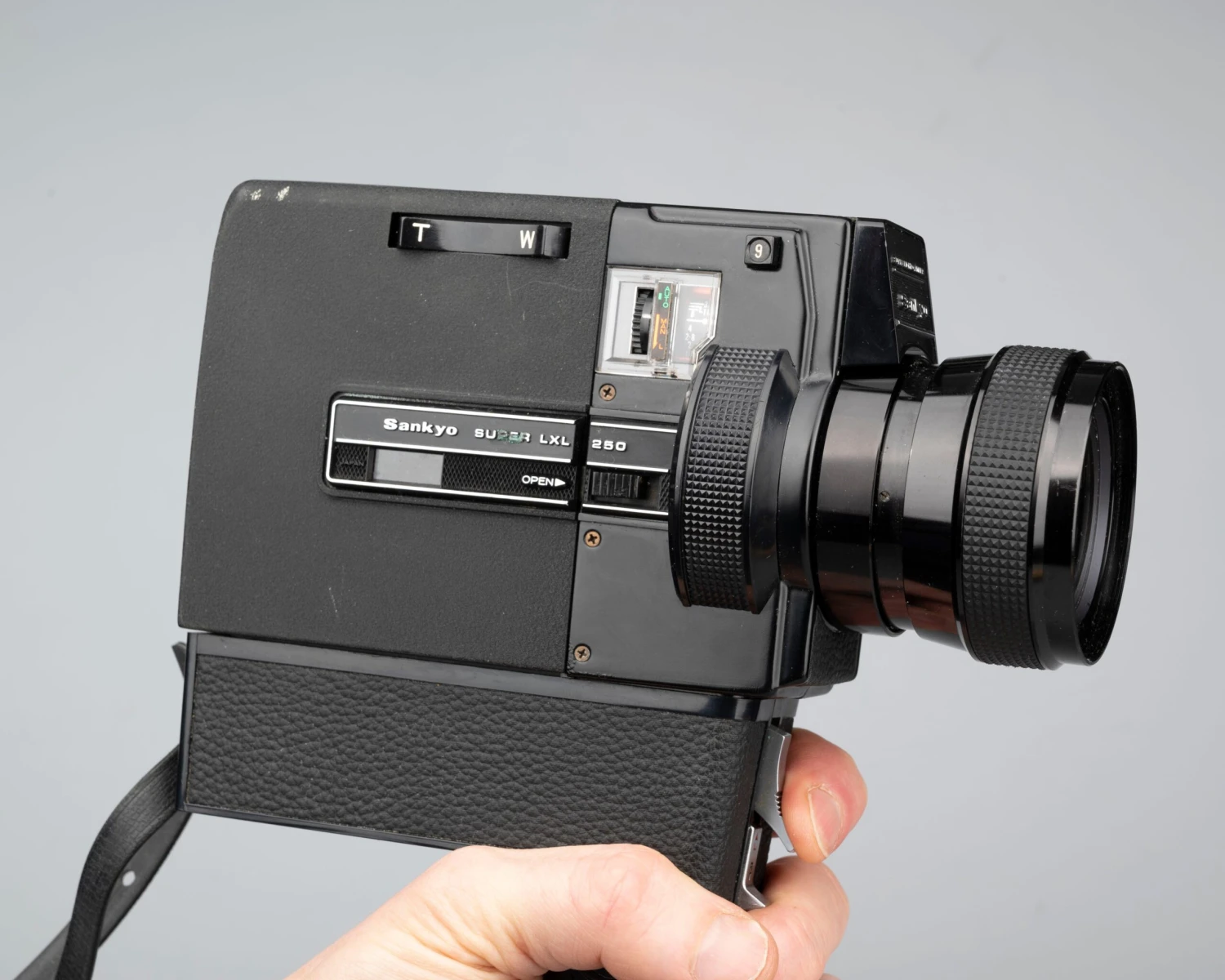 The Sankyo Super LXL 250 is an excellent super 8 camera for low/available light filming. The camera’s very fast f1.2 9mm-22.5mm zoom lens is sharp and easy to focus.
