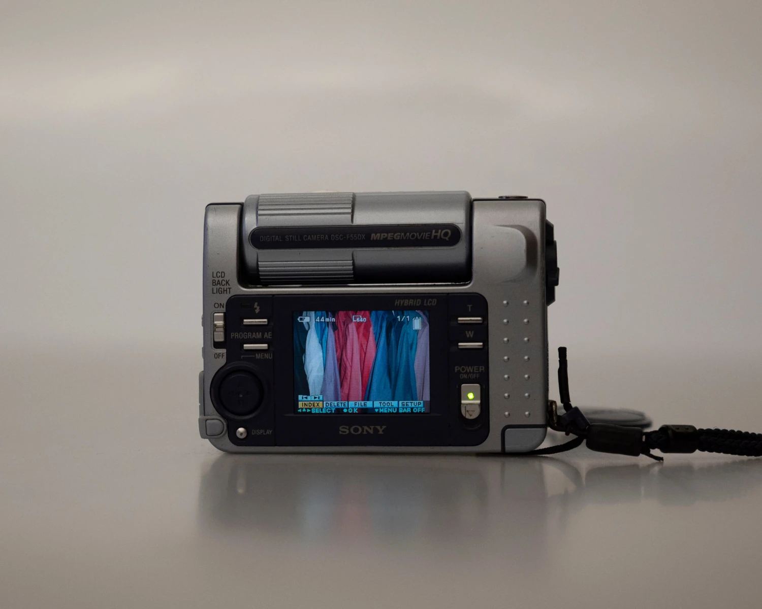 This is an early digicam, built when Sony designers were much more adventurous, the DSC-F55DX has some interesting features. One is the 180º swivelling head that allows you to take photos at unusual angles; another is the ability to switch off the LCD backlight (this greatly extends battery life).