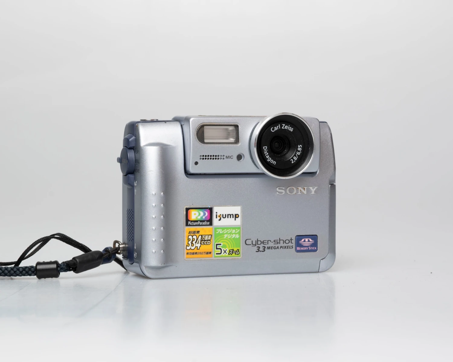 The Sony Cyber-Shot DSC-F55DX is a somewhat rare circa-2001 digicam that was only sold in Japan. This is a well-built camera featuring a metal body and a relatively fast, fixed Carl Zeiss Distagon 37mm (35mm equivalent) f2.8 lens. Its CCD sensor offers a claimed 3.3 megapixel resolution (this is figure is reached through interpolation, the native resolution is closer to 2.58 megapixels).
