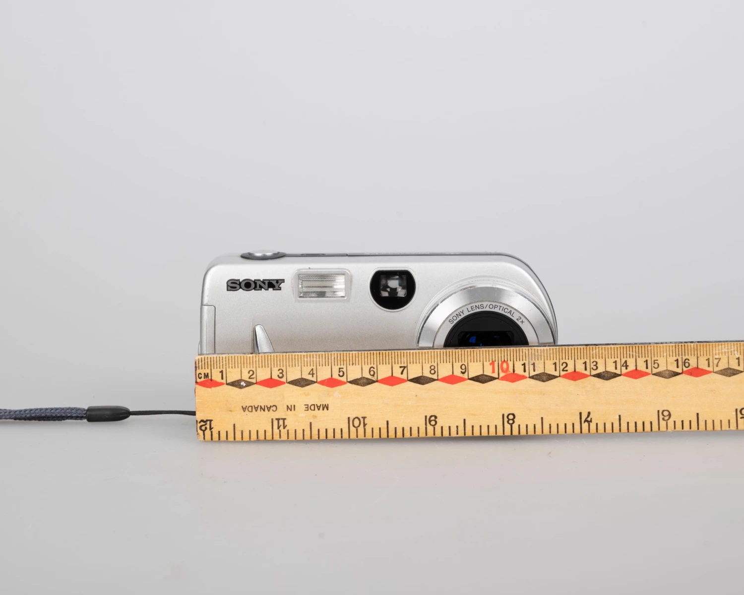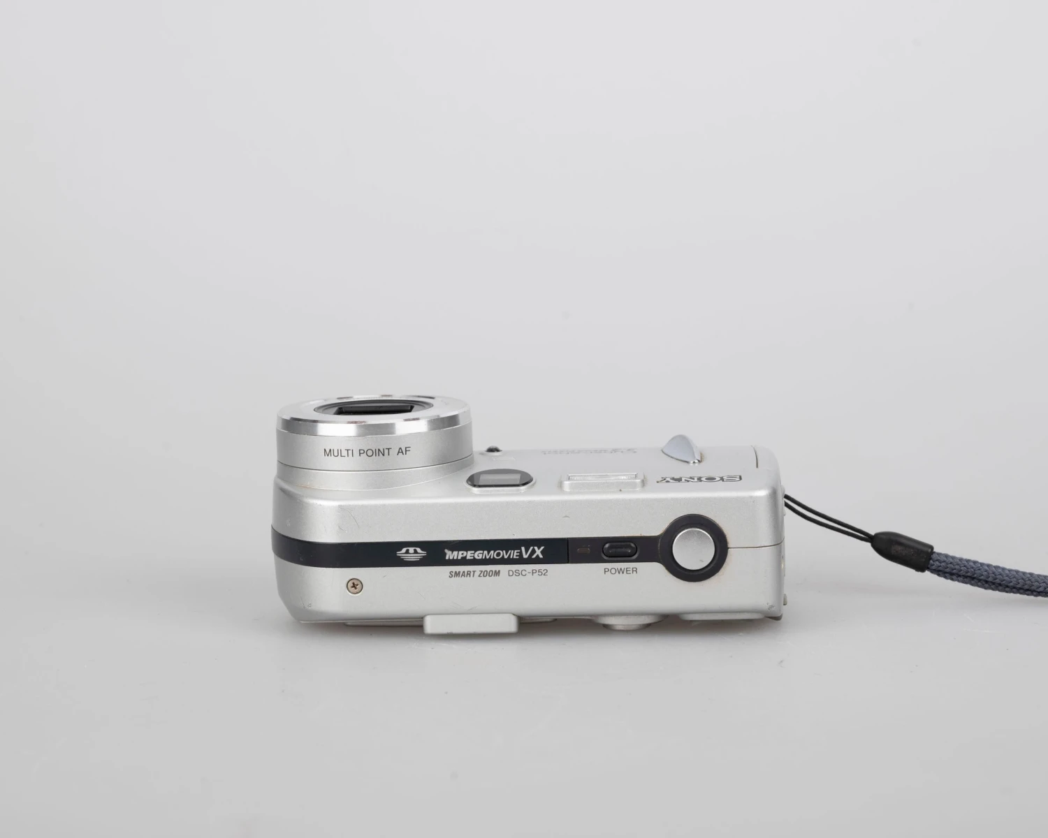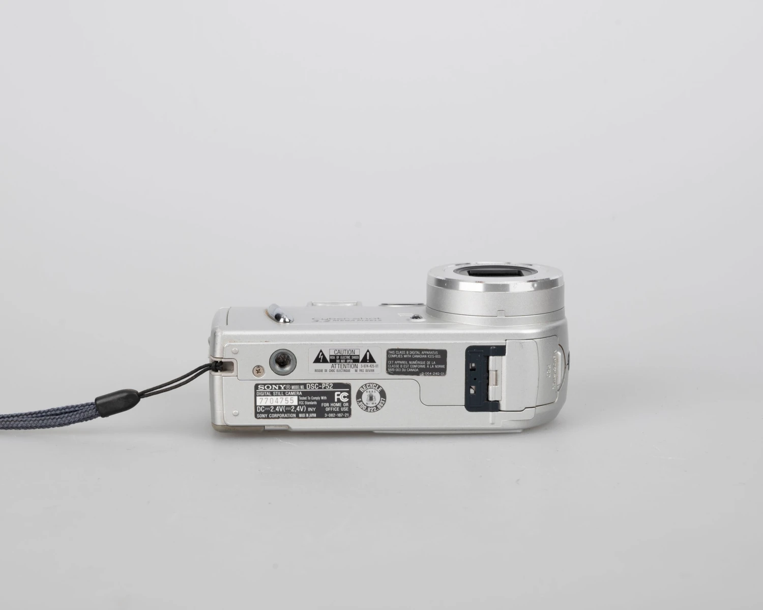 The Sony Cyber-Shot DSC-P52 is a circa-2003 digicam featuring a 3.1 MP CCD sensor. This camera uses Memory Stick-type memory (16 MB Memory Stick is included) and normal AA batteries for power (not included). USB memory card readers with Memory Stick support are still widely available at online electronics shops (usually as ‘multi-format’ readers; Memory Stick is often abbreviated as ‘MS’).
