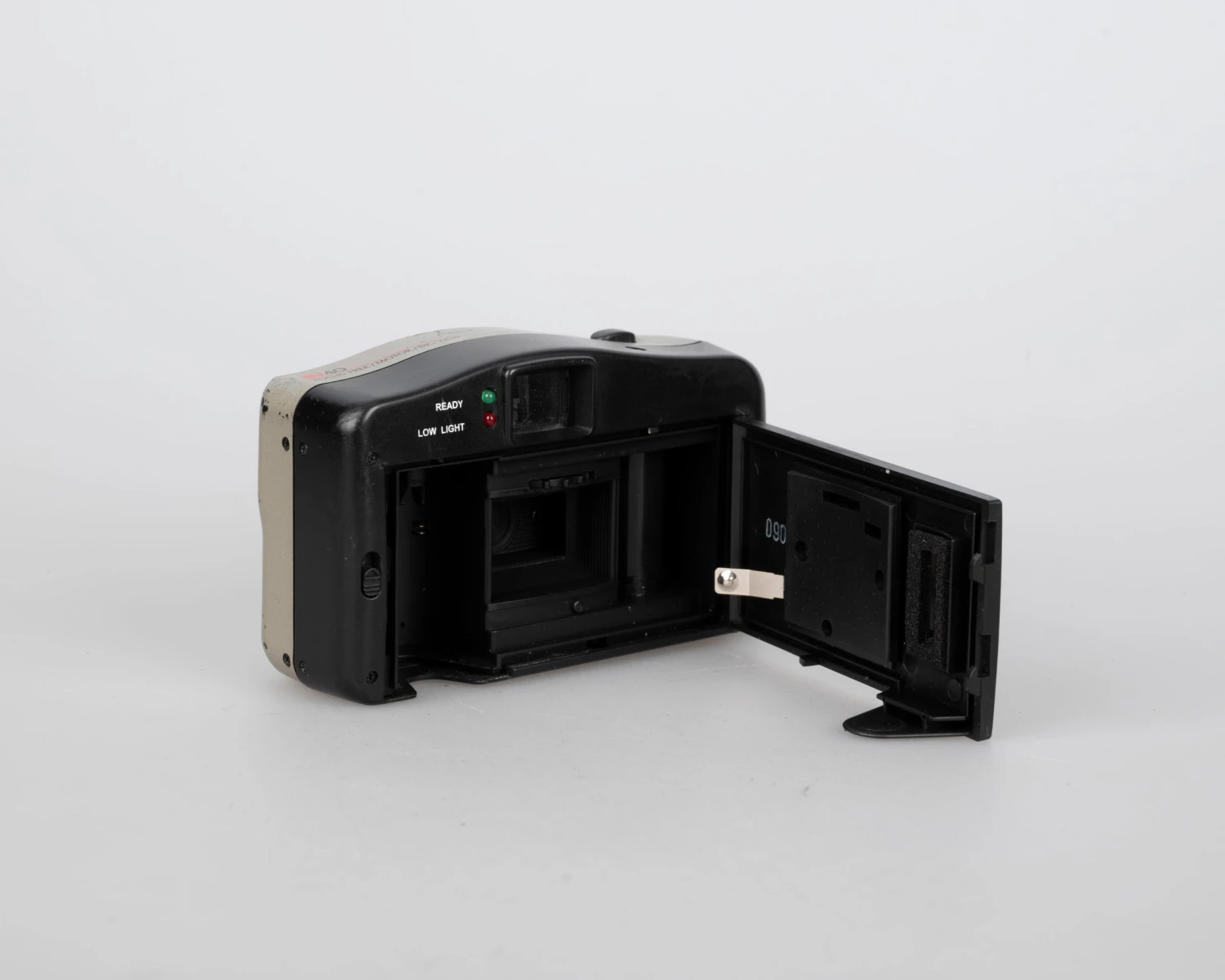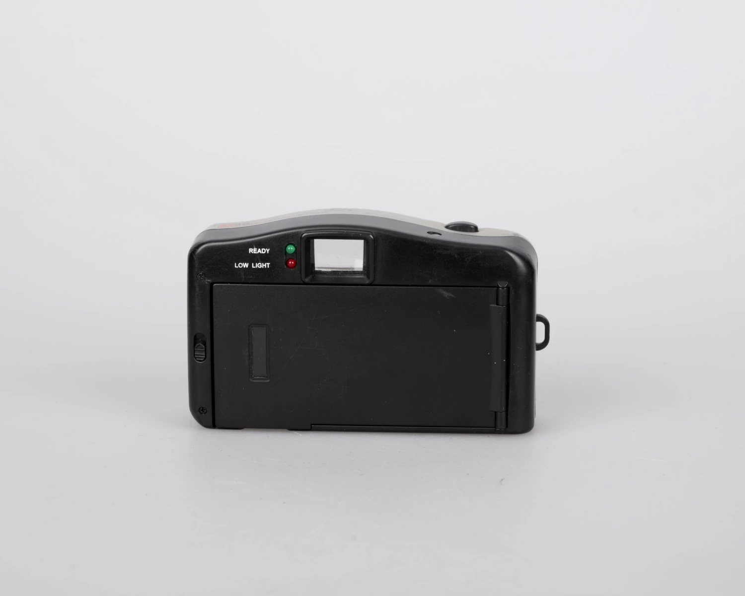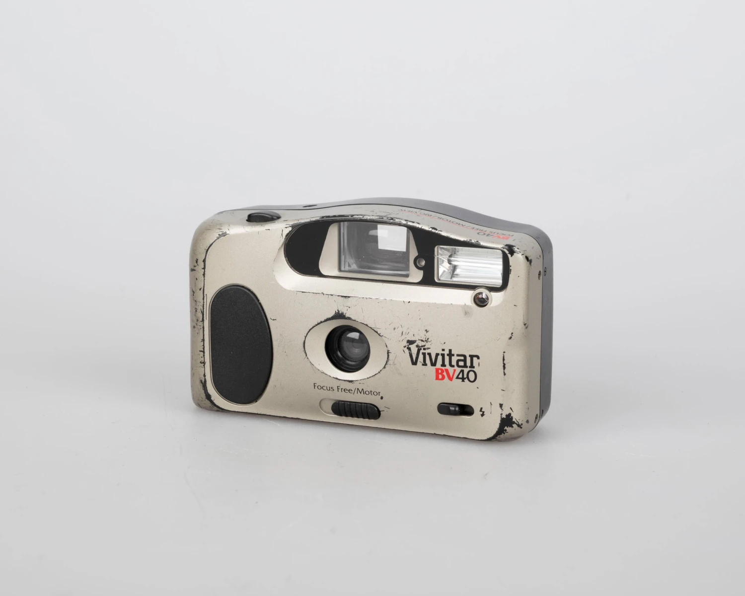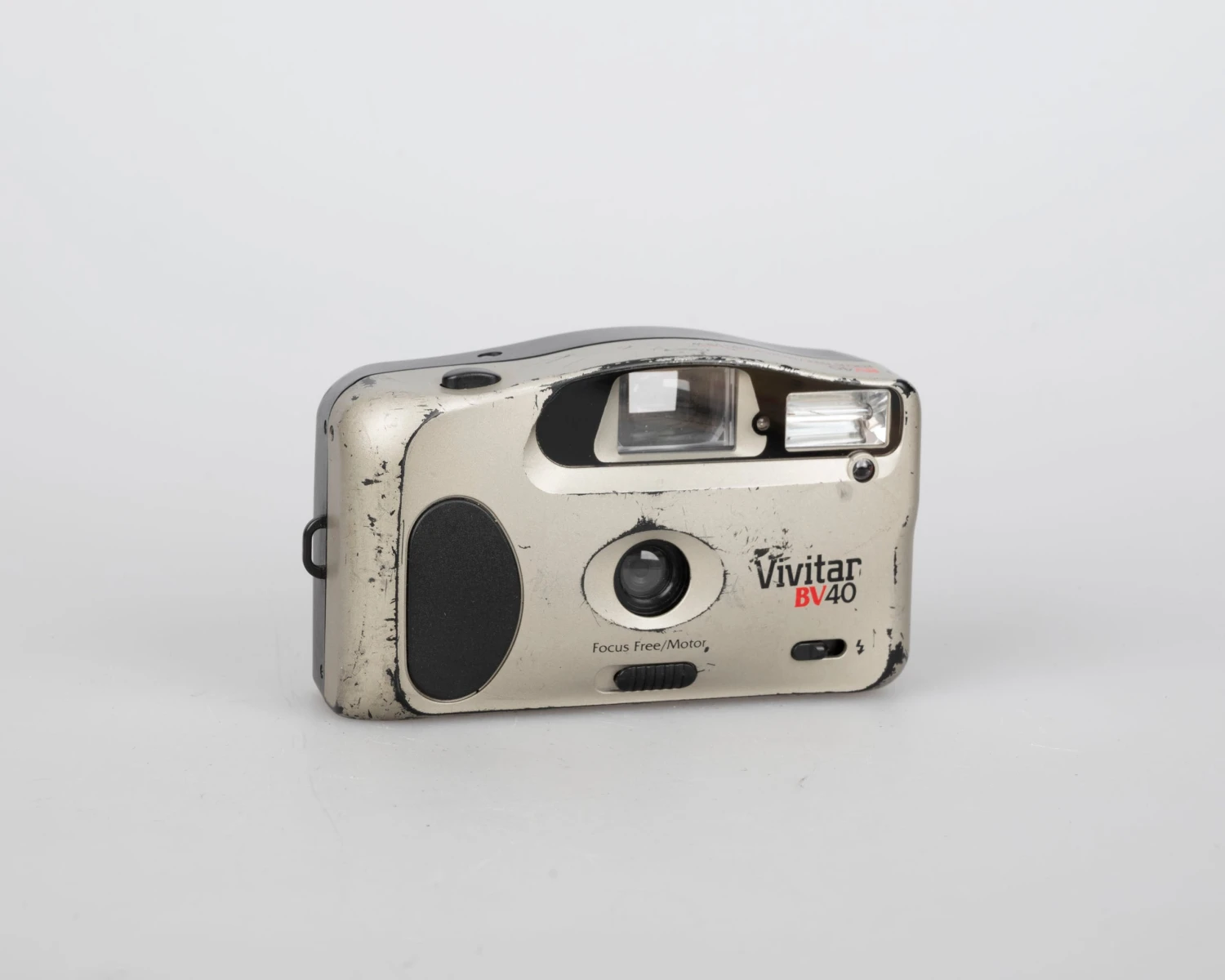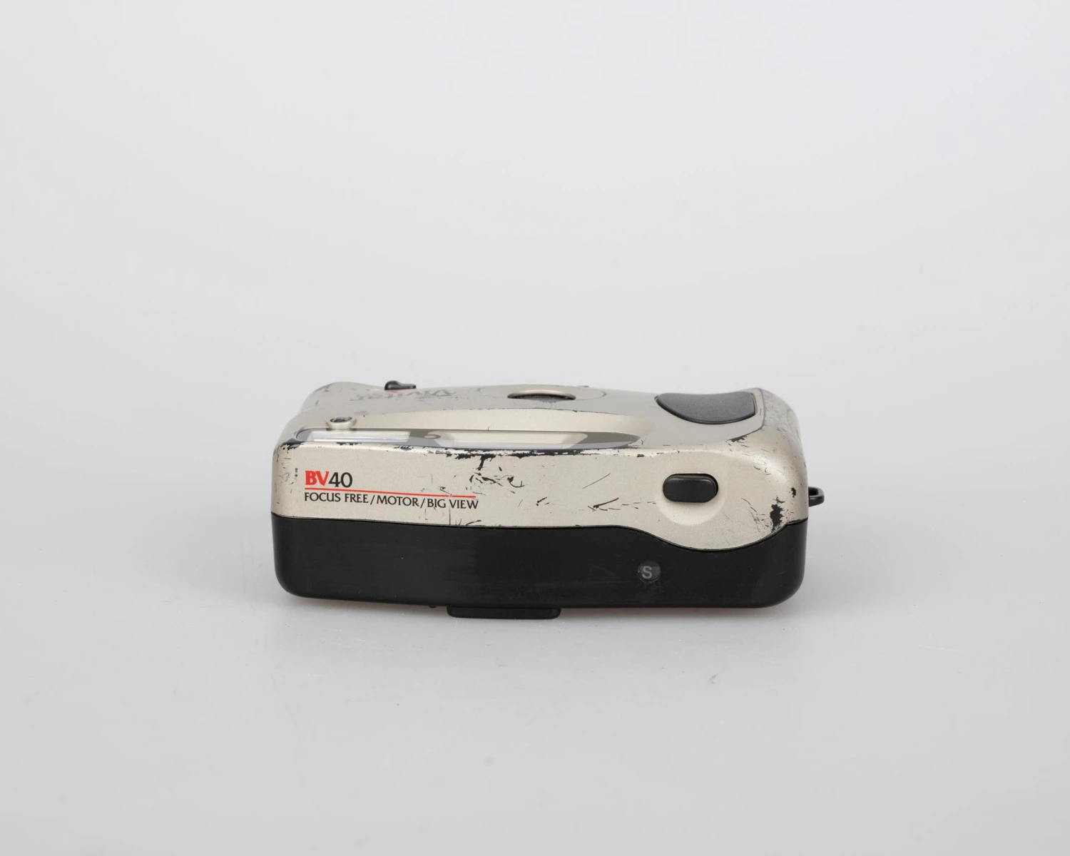 The circa-2002 Vivitar BV40 is a simple 35mm point-and-shoot featuring automatic flash, a focus-free lens design, and motorized film advance.