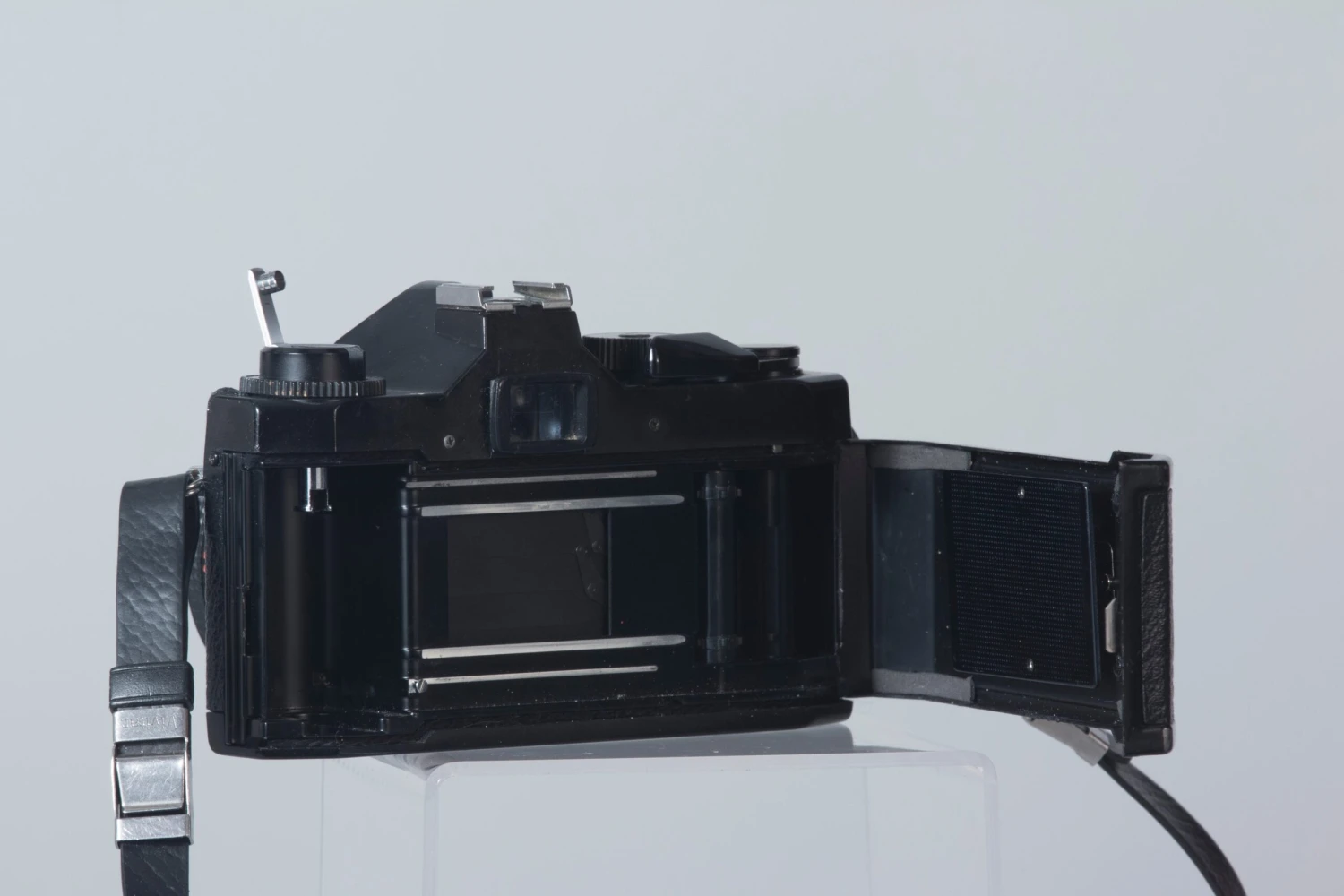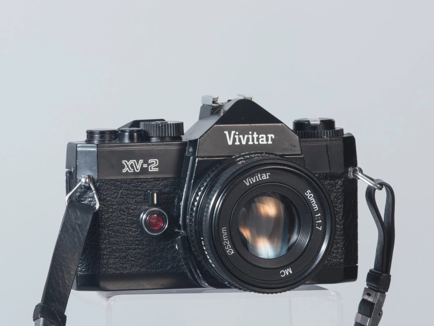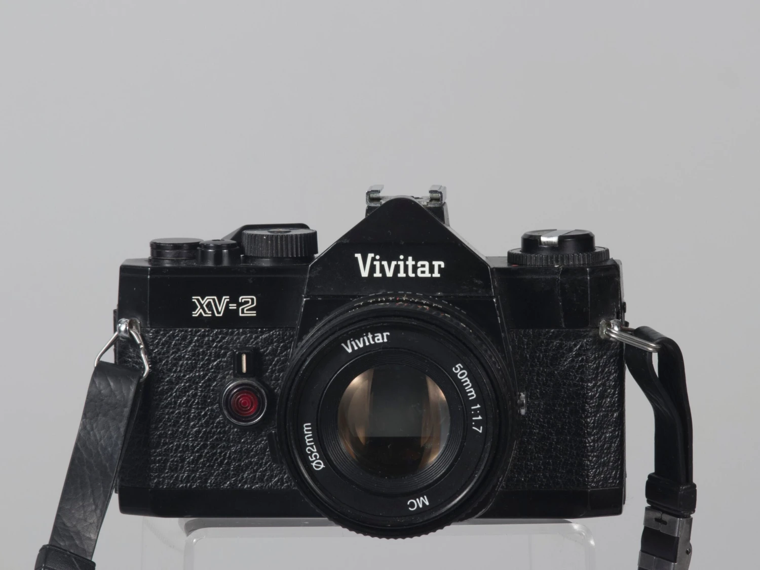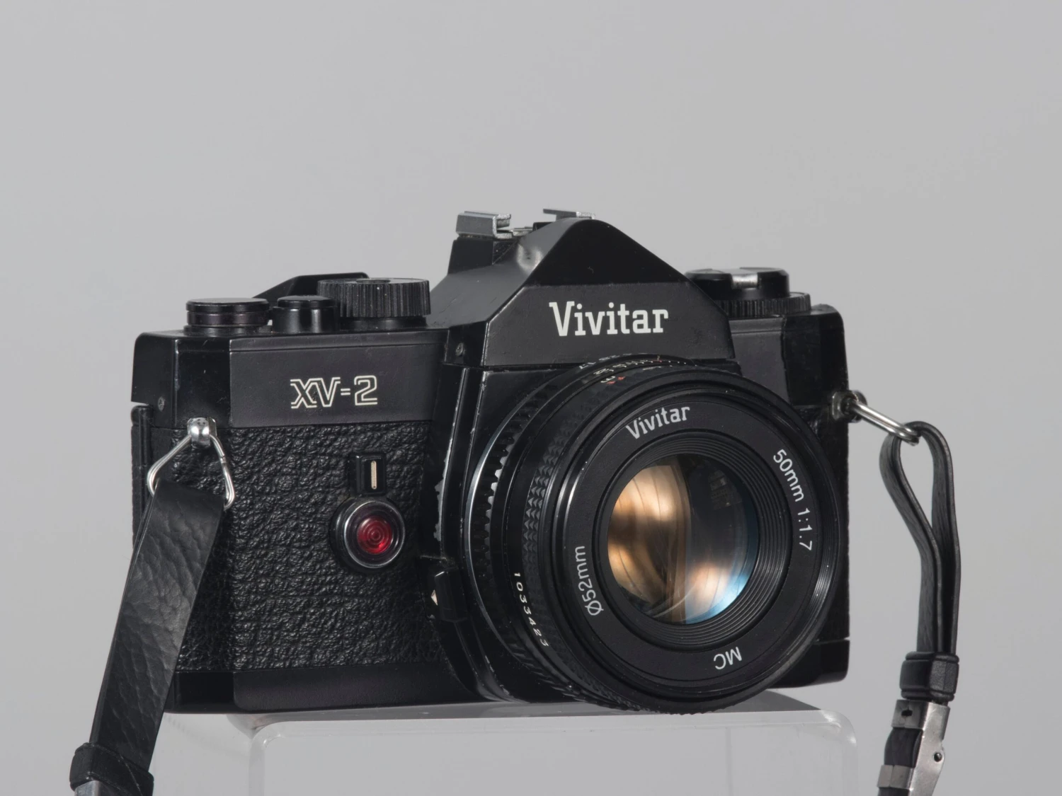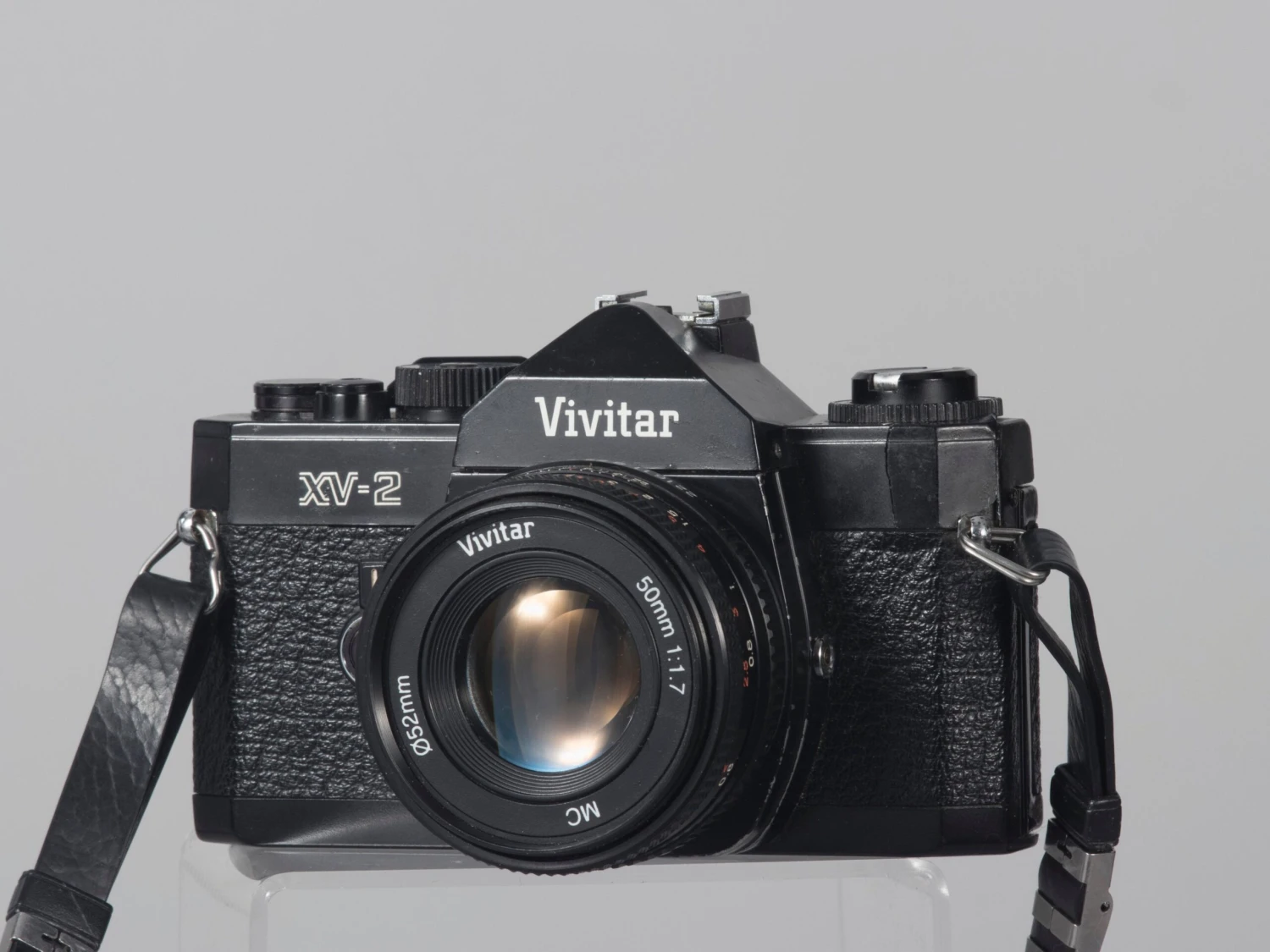 The Vivitar VX-2 is a simple and lightweight 35mm SLR that’s compatible with Pentax K-mount lenses. The camera was built by the company Cosina (who also sold this camera as the CT-2). The included lens is a Vivitar 50mm f1.7.