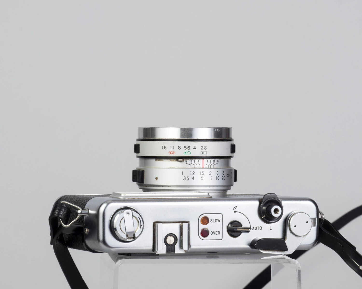 - Lens: Yashinon 45 mm f/2.8 lens composed of four elements in three groups.
