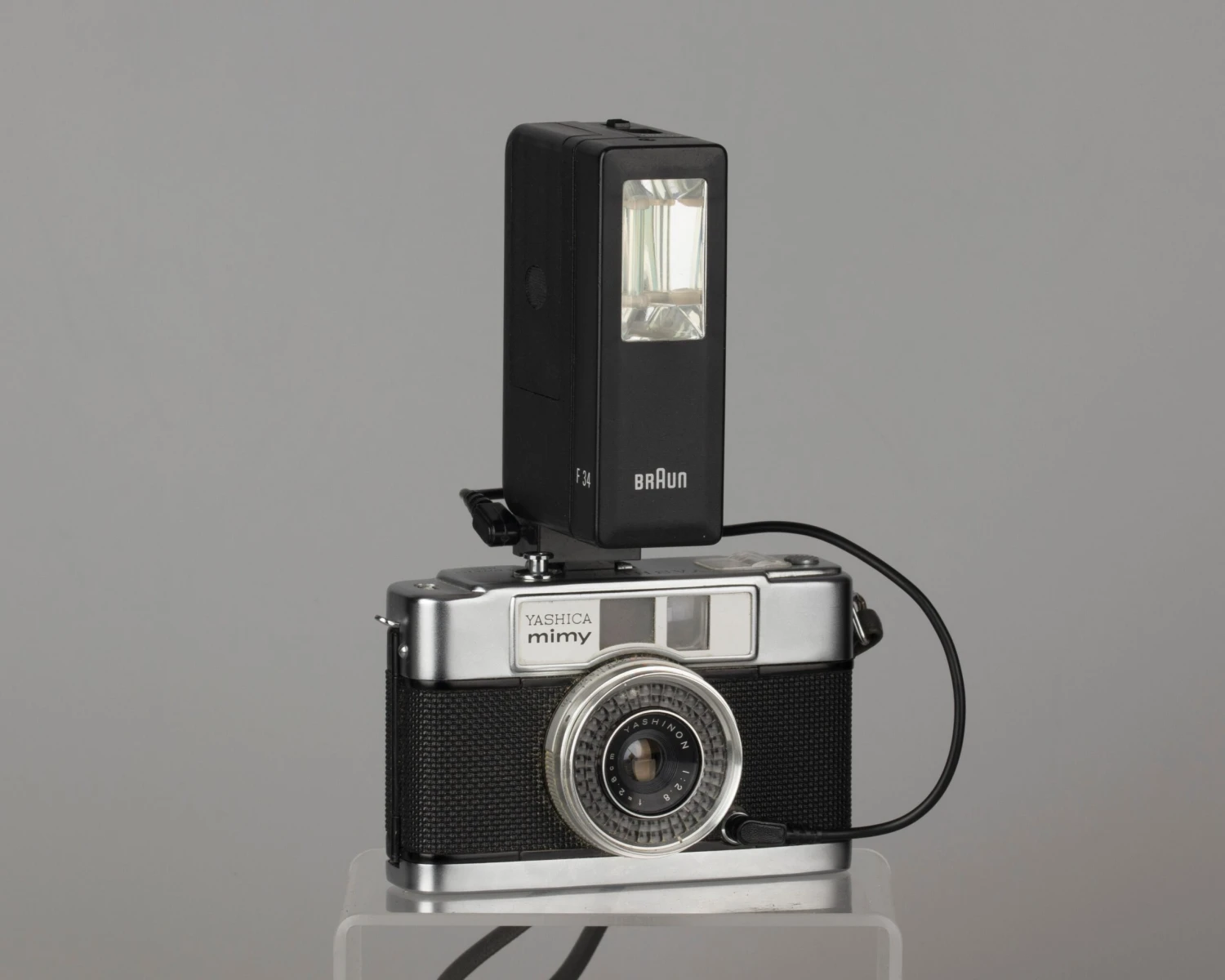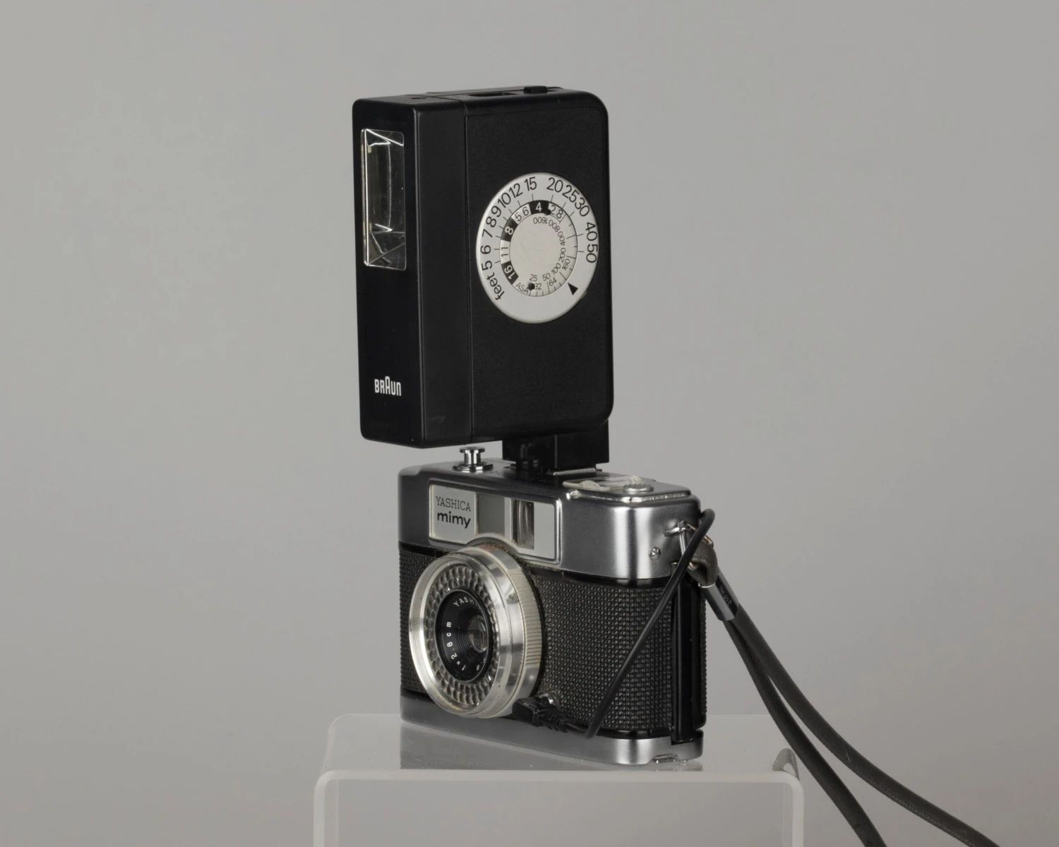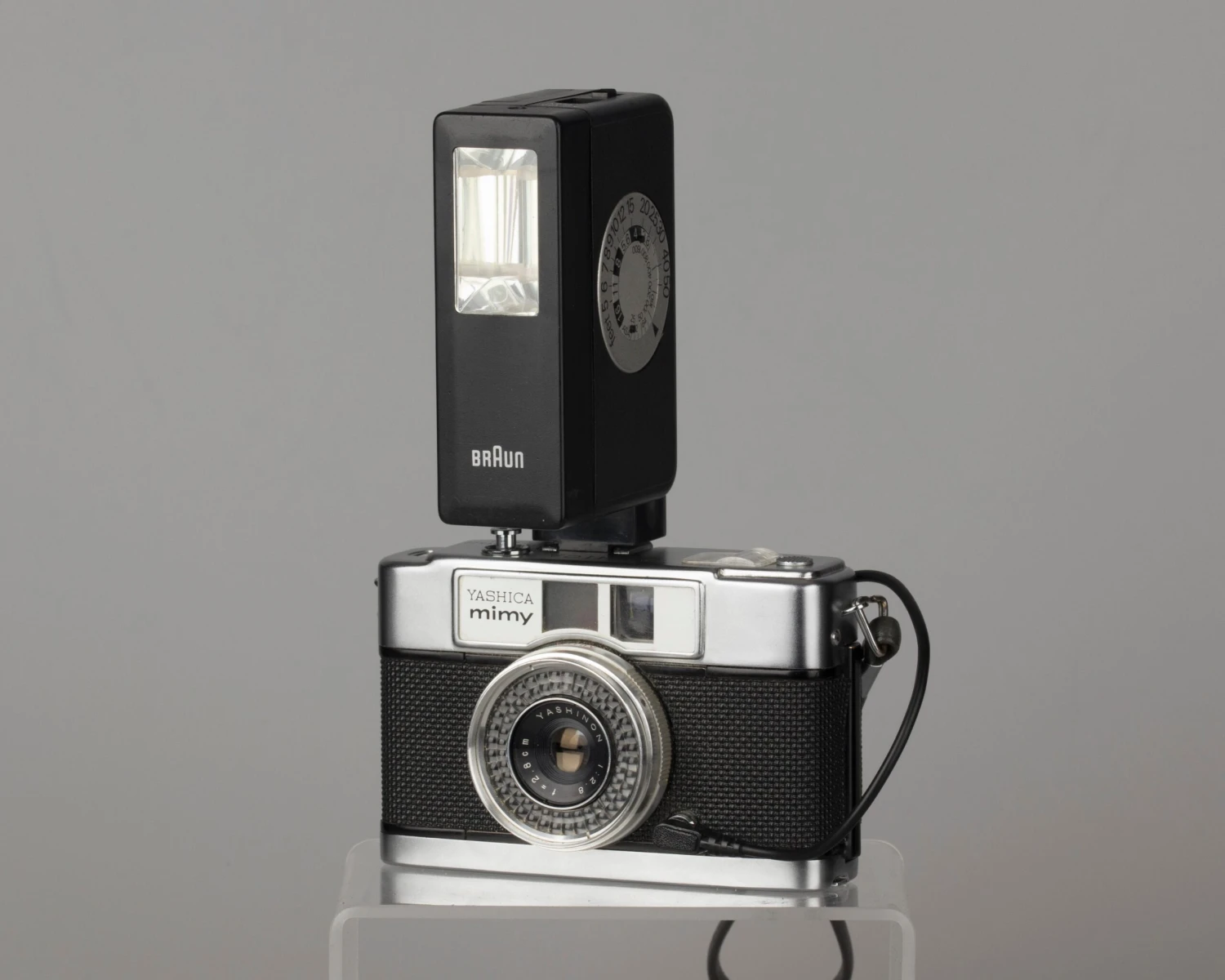 We included a Braun flash (AA batteries not included) to make the use of very slow film like Fujifilm Velvia 50 more practical;. A neutral density filter is a recommended if you use fast film in bright sunlight (not included; filter size is a 40.5mm).