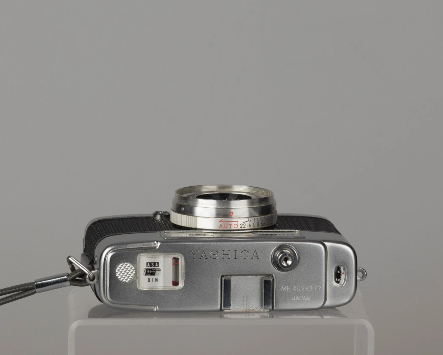 This camera has a fully automatic exposure mode powered by a selenium cell (no battery required). In addition, you can manually pick an f-stop (use this mode for flash photography). The lens is a nice fixed focus Yashinon 28mm f2.8; At f.28, everything from 2.39m-4m will be in focus; by f11 everything from 1.5m to infinity will be in focus (see the manual linked below for a full depth of field chart).