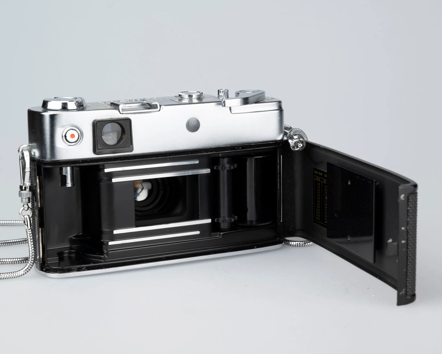 The camera was tested with film and delivered sharp, well-exposed images. It is in very good cosmetic condition as well (see photos). The most noteworthy flaw is that the EV ring around the lens has a somewhat stiff feel.