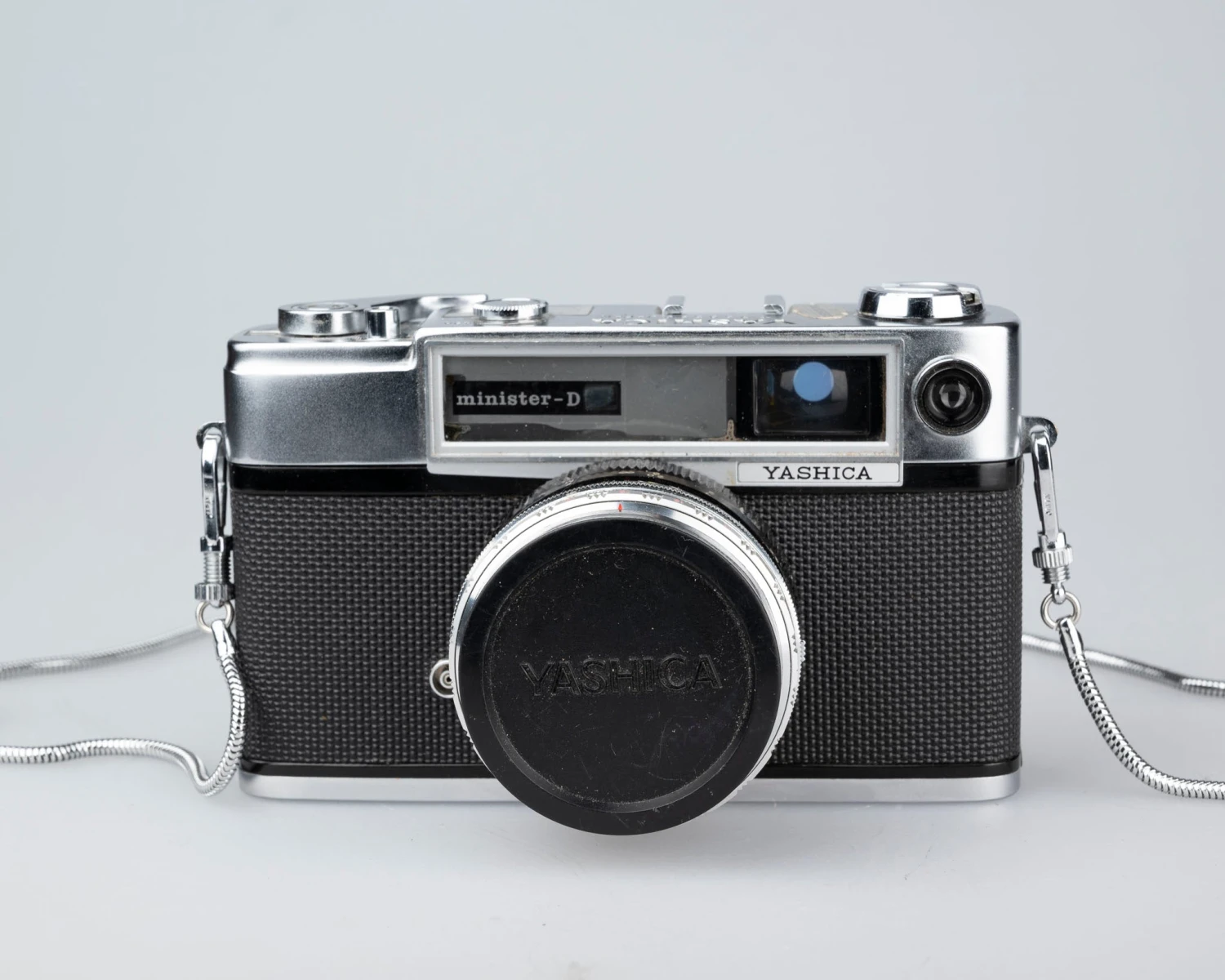 The Yashica Minister D is a circa mid-1960s 35mm rangefinder camera with a sharp 45mm f2.8 lens. This camera features a light meter that gives readings in EV (exposure value); you turn an EV ring around the lens to match light meter reading.